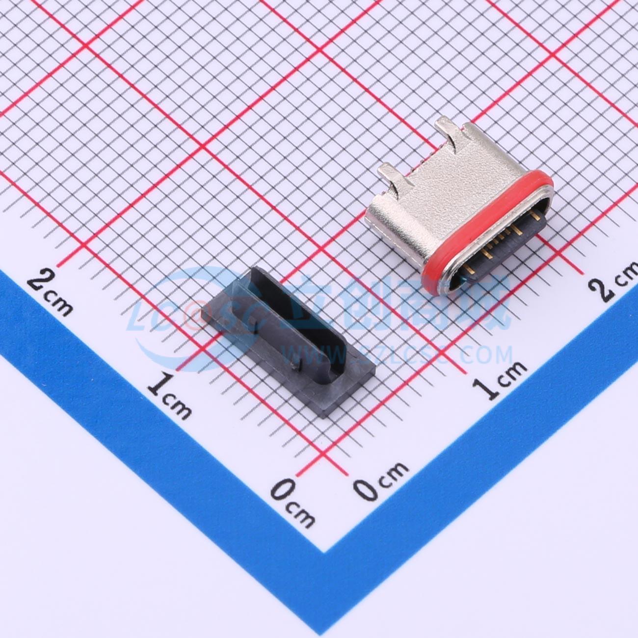 TYPE-C 16P母座防水IPX8 直立式四脚贴板 粉末冶金外壳U型口L=6.80 舌头外露0.95