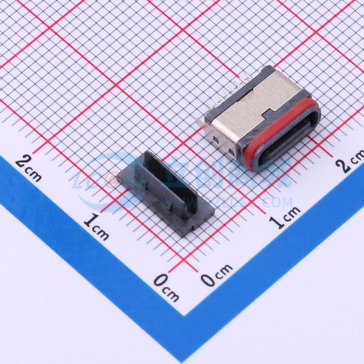 TYPE-C 16P母座防水IPX8 两脚立插 全塑U型口 L=7.45