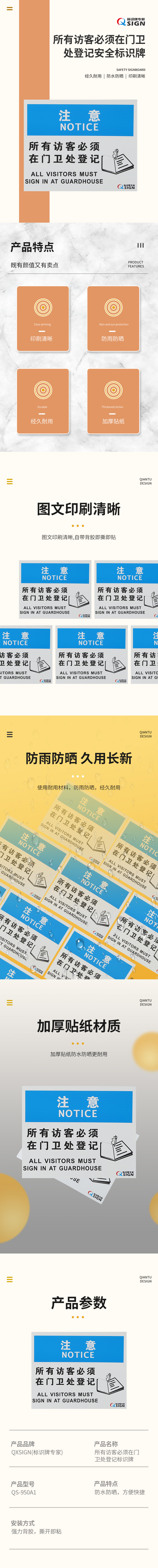 QXSIGN(标识牌专家)OSHA安全标识所有访客必须在门卫处登记 QS-950A1