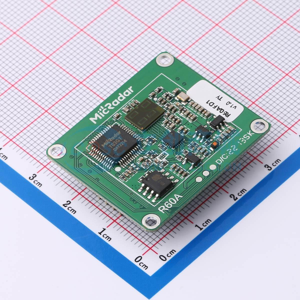 - R60AFD1 雷达模块是采用 60G 毫米波雷达技术,实现的人体动作及姿态感知,进而实现跌倒监测功能的雷达 模块。模块基于 FMCW 雷达体制,实现特定场所内人员状态的无线感知,并及时的上报人员的跌倒状态及长 时间不动上报静止驻留告警。