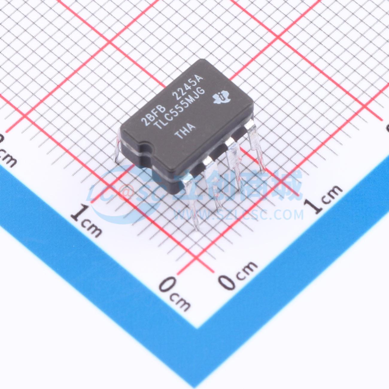 此图展示了型号为 TLC555MJG 的焊盘布局