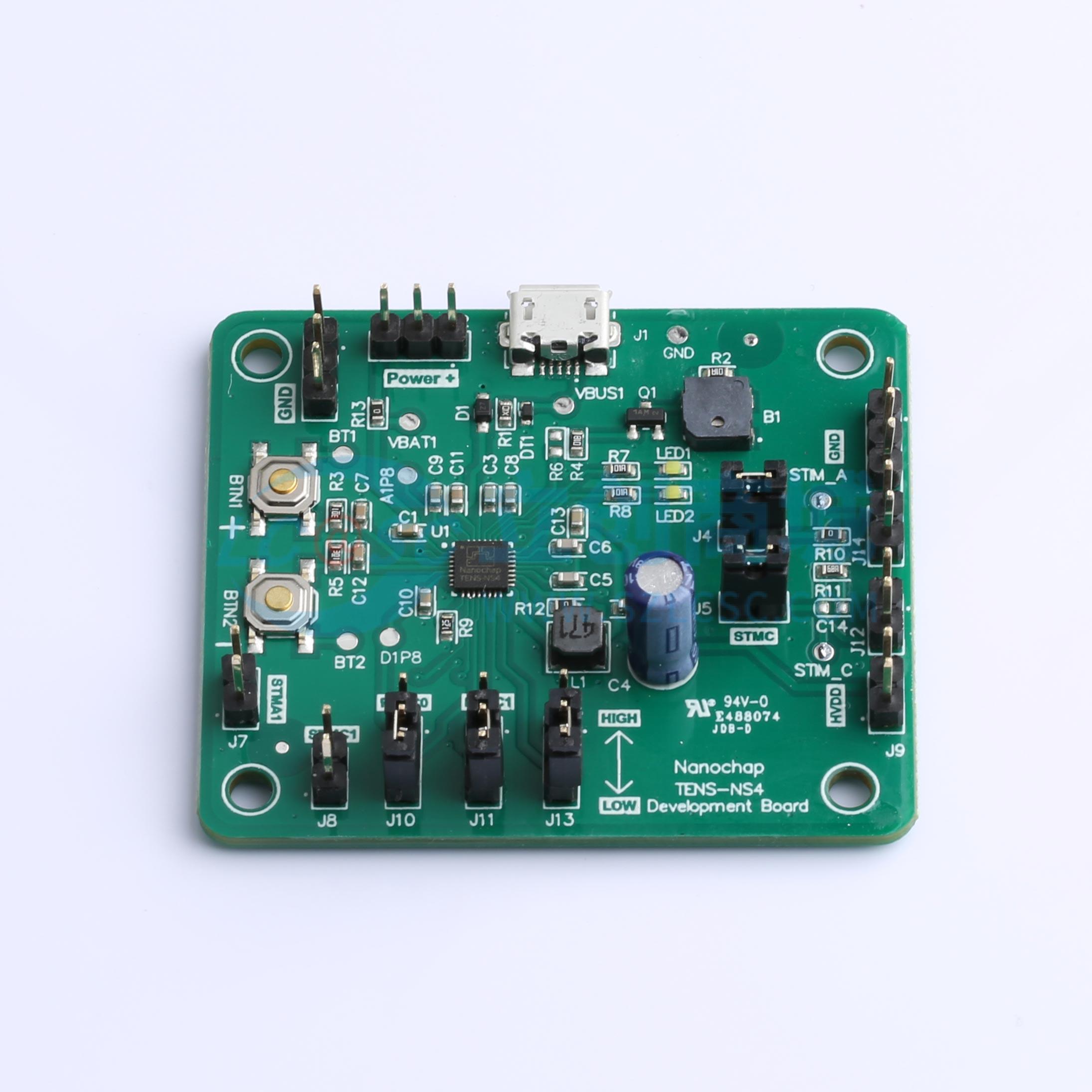 - 多功能刺激开发板 本开发板可用于TENS-NS4芯片电路设计参考及芯片功能测试,方便了解芯片功能与应用。芯片具备Tens镇痛、辅助增肌、肌肉康复三种刺激功能 特点: 恒流源输出:刺激器通过恒流源从HVDD上获得电源,恒流源范围是3.6mA到57.6mA 高集成度:集成电池充电模块、电源开关、高压升压转换器和多模式刺激模块 低待机功耗:待机电流2uA 低应用成本:芯片可实现多种刺激模式以支持各种终端应用,芯片只需加少量的外围元器件即可搭建实现其刺激功能。