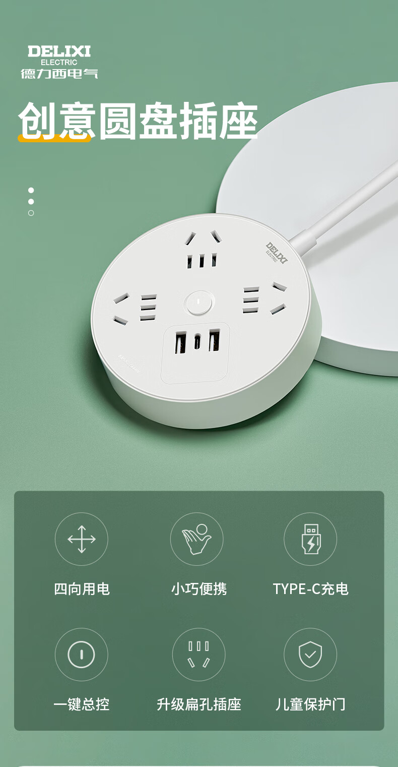 DELIXI(德力西)圆盘插排 总控20孔CD98H-YK4X 0.8M CD98H-YK4X 0.8M