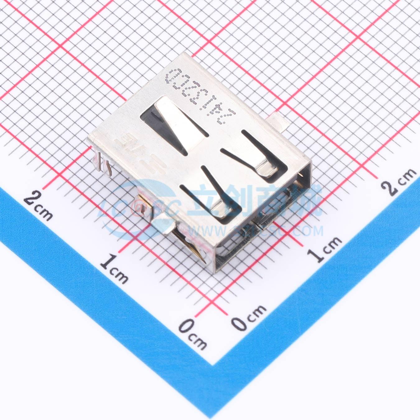 A,2.0,标准外形,插座,1 端口,边缘,直角,盒式与托盘包装/托盘包装,齐平式,通孔焊接,电缆到电路板连接,USB 连接器