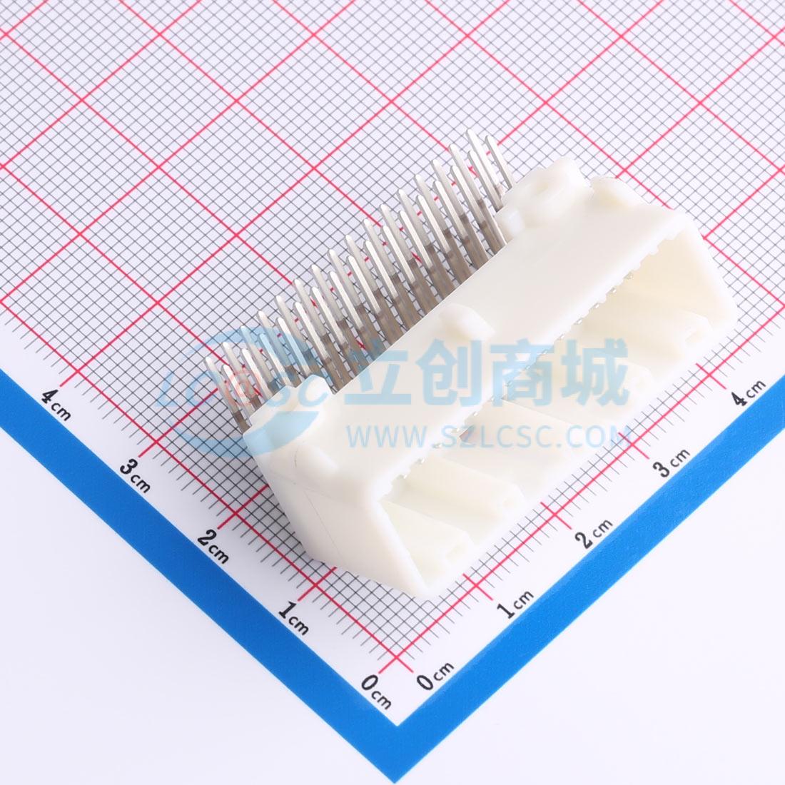 - 卧式、线对板、32 位、2 排、中心线间距 2.2mm [.087in]、镀锡 (Sn)、印刷电路板、信号、本色、0.64/025 连接器系统