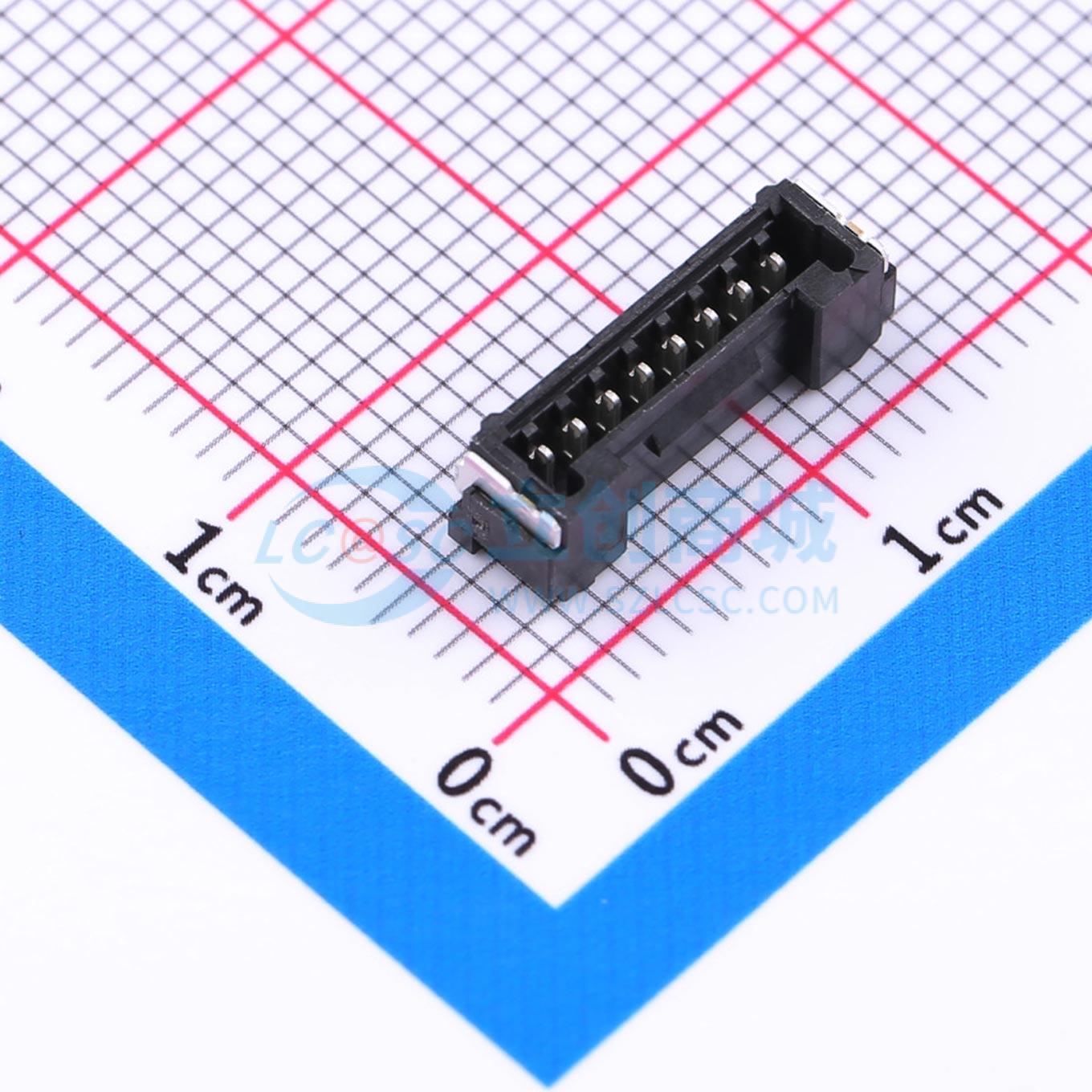 PCB 排针和排母 间距 1.25mm,Micro-Lock Plus 型 PCB 排针,单排,直角,表面贴装,镀锡铋,带正向锁扣,8 路,黑色