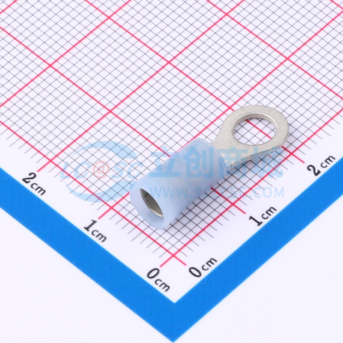 环形和叉形端子 适用于14至16 AWG电线的Avikrimp环形舌形端子,螺柱尺寸10(M5),长度22.48mm,蓝色,纸盒装