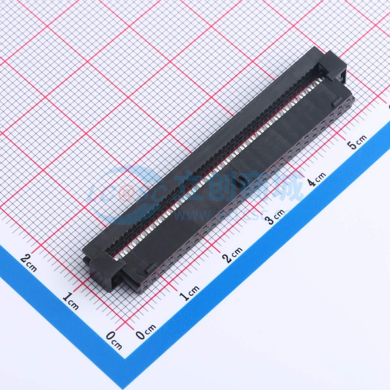 - 连接器外壳 双列、IDT、无铅、50 路、0.38µm 金(Au)选择性电镀、带中心极化键和锁定摩擦坡道的密间距电缆对板插座
