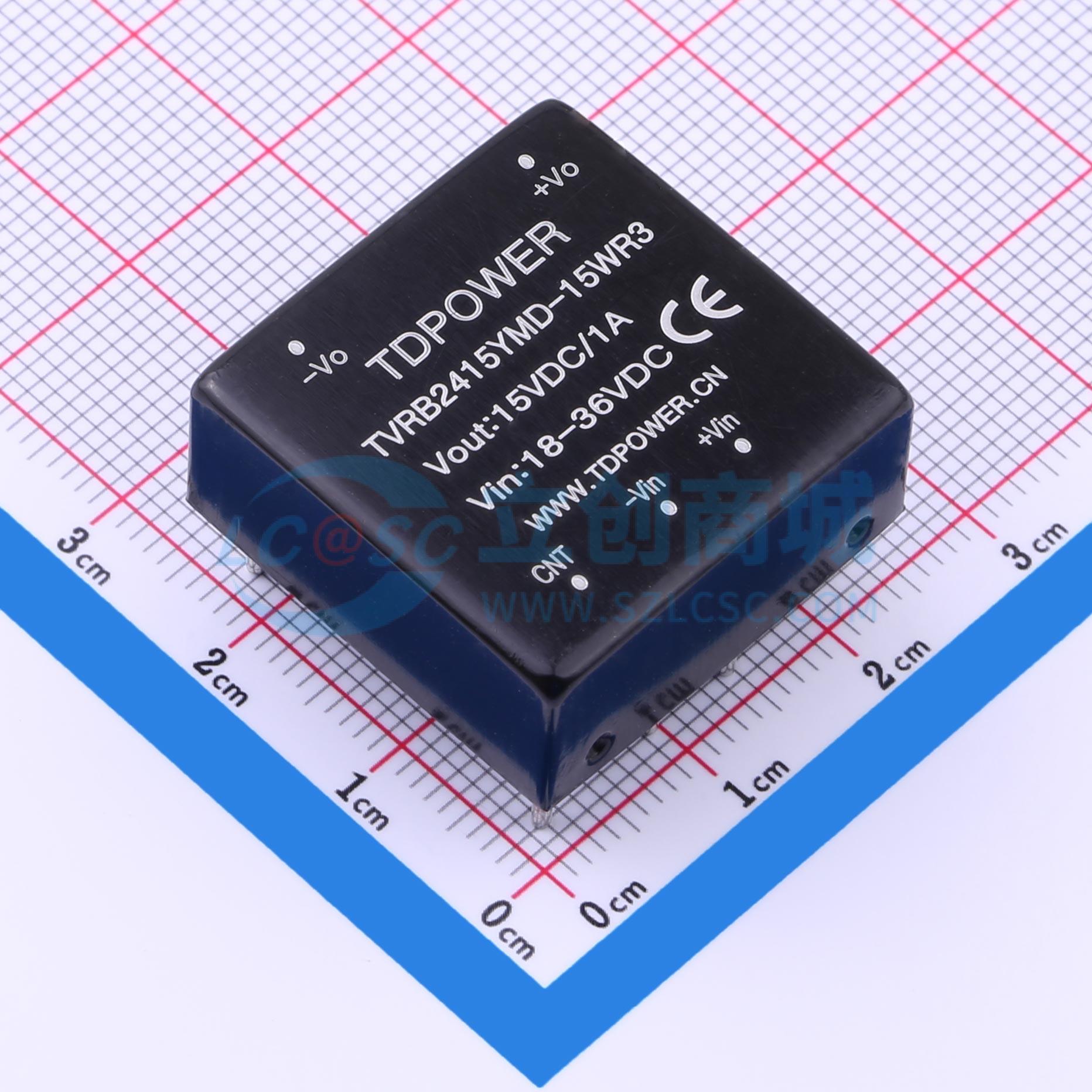- 输入范围DC18~36V/2:1,输出15V,15W,隔离电压大于1.5kV,1*1英寸国际标准,工业级,T_YMD-15WR3系列模块电源效率高达89%,兼容VRB2415YMD-15WR3,DIP:25.4*25.4*11mm