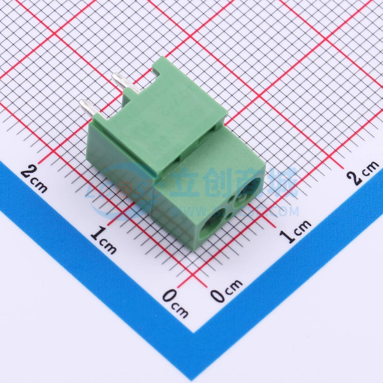 - 2位PCB接线端子排、插头,线对板连接,中心线间距5.08 mm [.2 in],1排,导线接入角度90°,适用线规30-12 AWG、线径.05-3 mm²,额定电压300 VAC