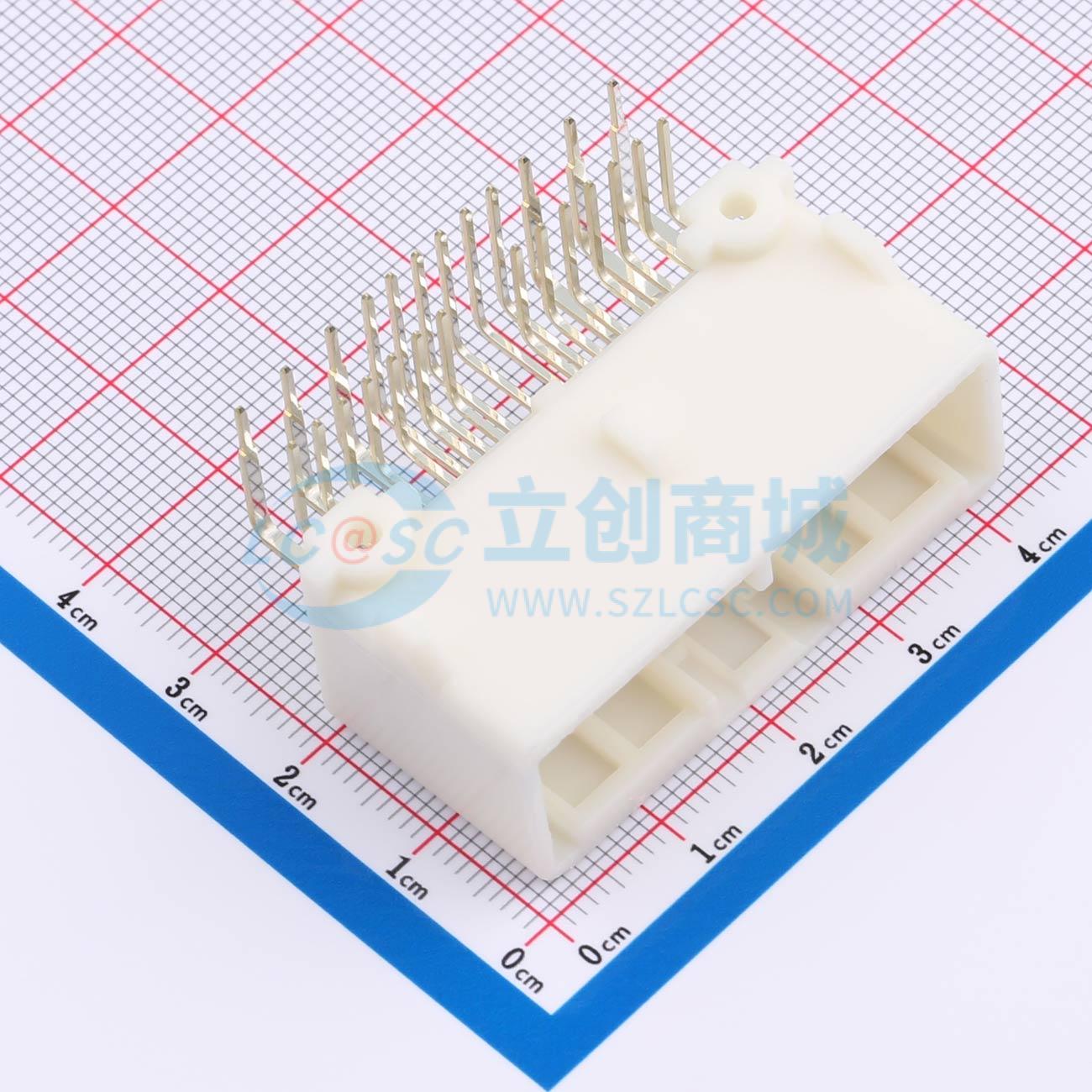 - 卧式、线对板、26 位、2 排、中心线间距 2.2mm / 4mm [.087in / .157in]、镀锡 (Sn)、印刷电路板、0.64/025 连接器系统