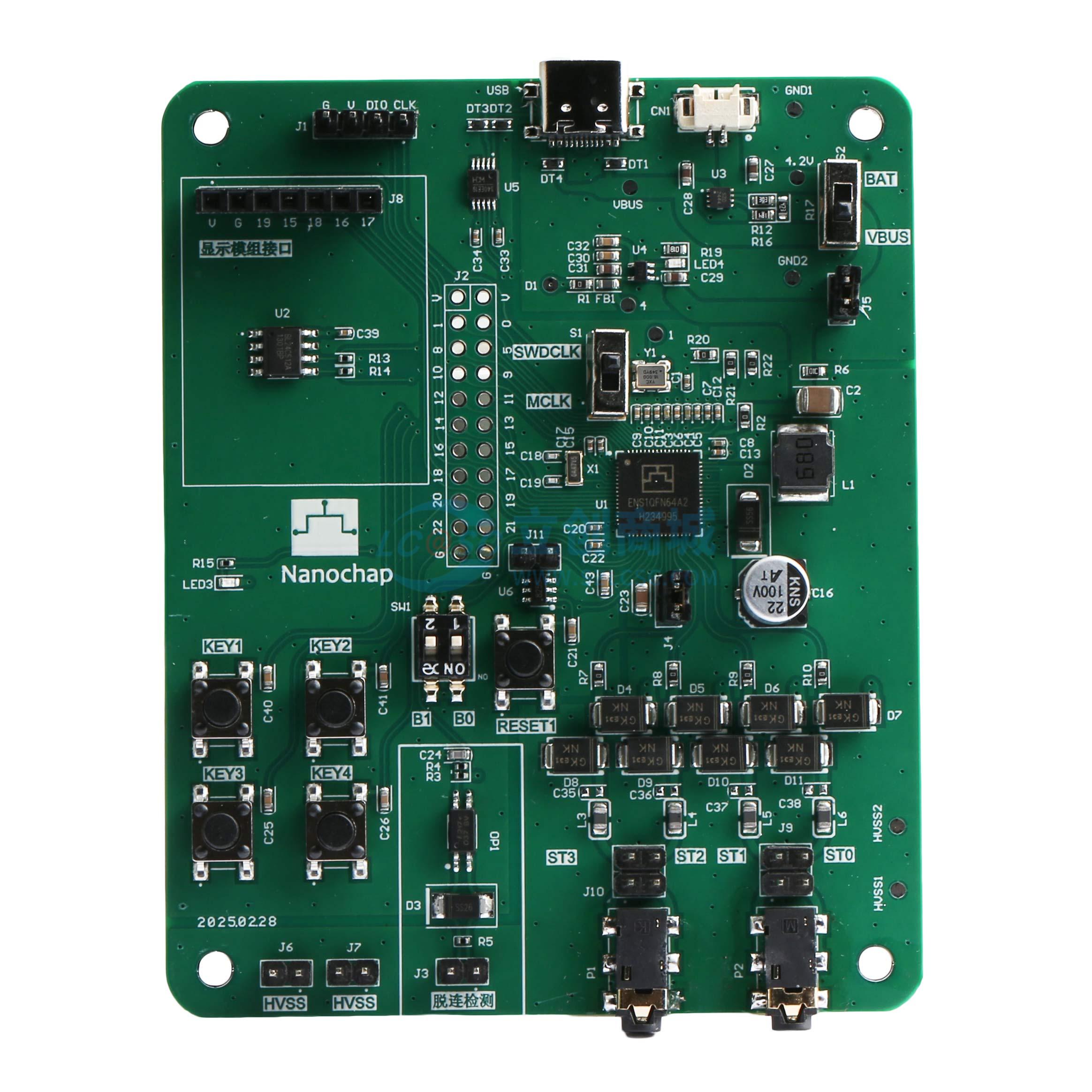 - ENS1EVKE开发板是基于ENS001-A2双通道神经刺激芯片制作,主要用于对ENS001-A2芯片的验证,刺激效果体验。板上留有阻容式模拟负载用于测试,以及刺激驱动器所需的boost电路,多种数字接口,OLED接口,方便进行产品开发前的方案验证,可用于验证体外高压刺激通道(4电极,2通道)。