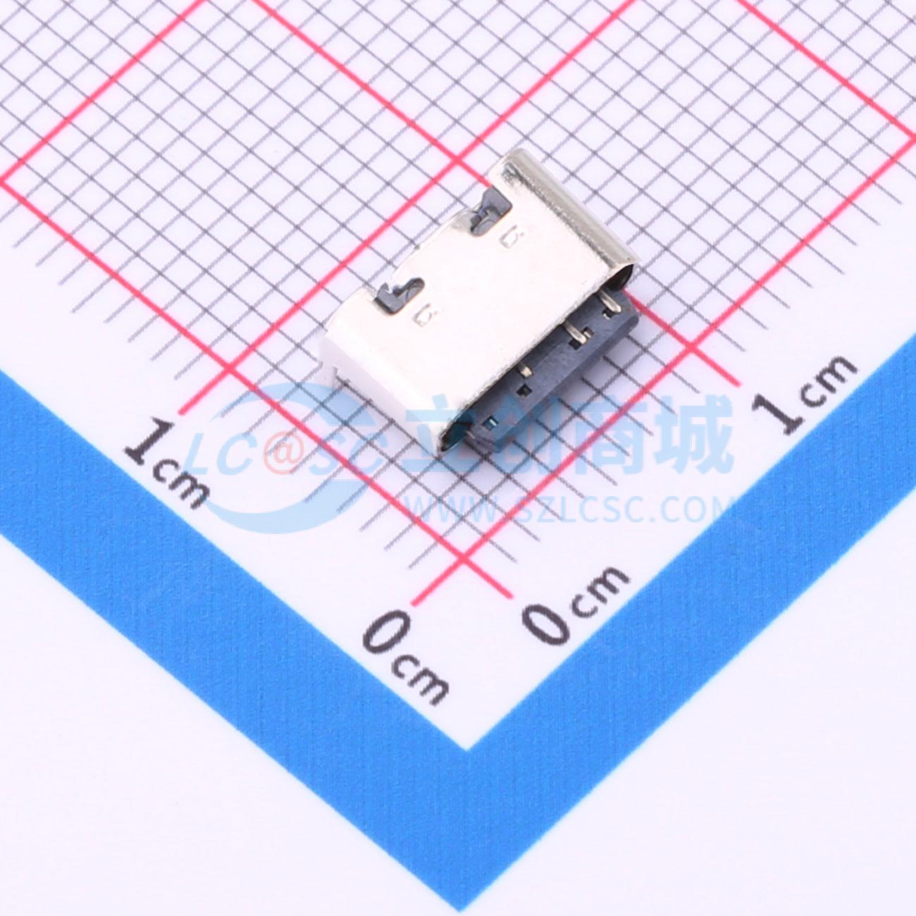 - USB连接器 TYPE C 6P板上后两脚插板 SMT H=5.0漏舌片