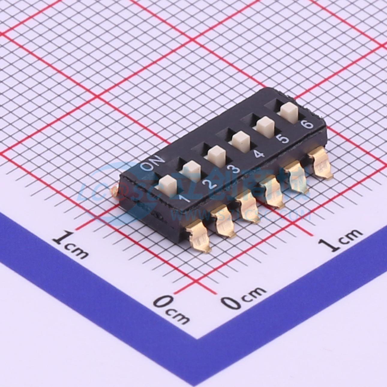 间距2.54mm 平拨,凸起式 6位拨码开关