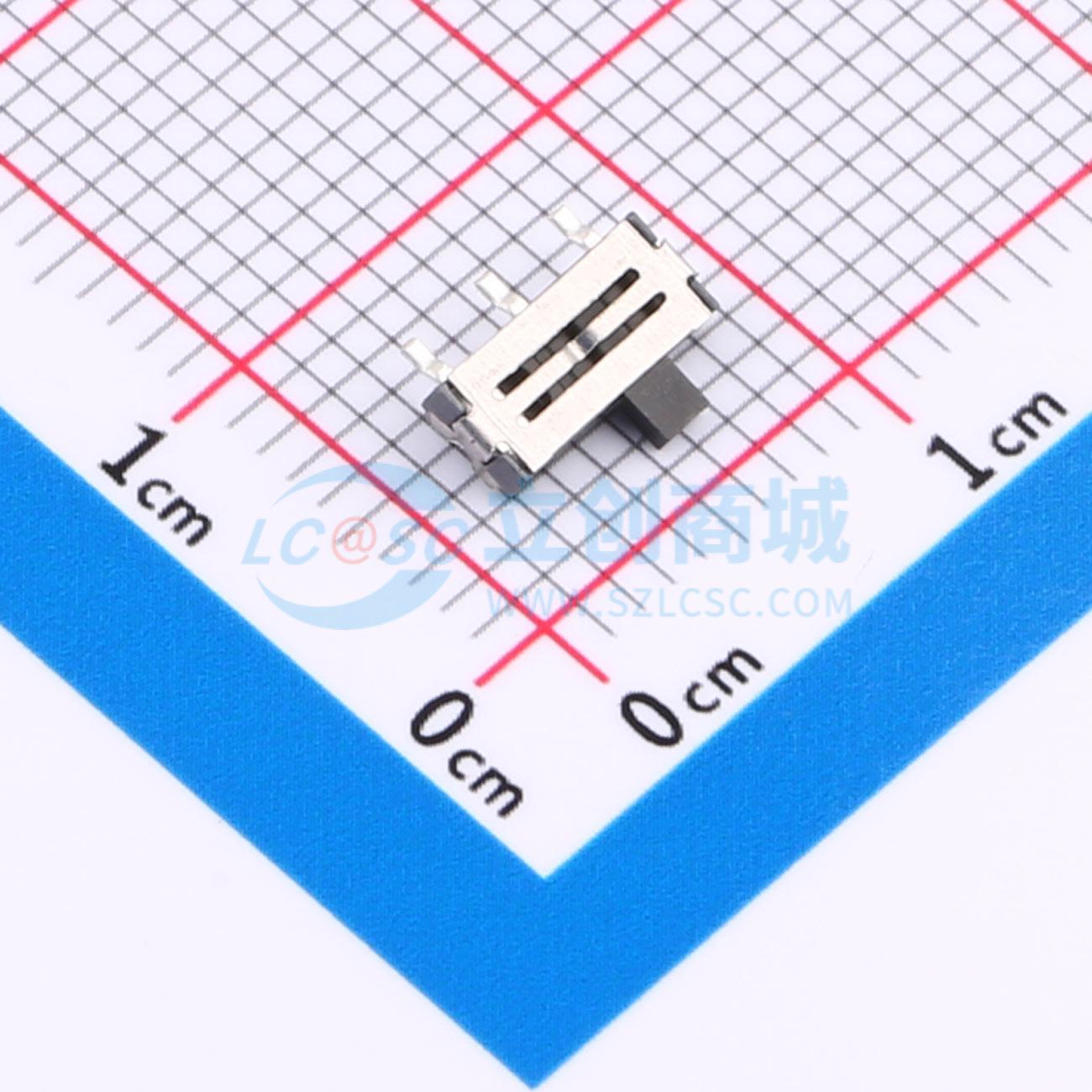 - 拨动开关,侧贴两档,7.1x3x1.0,三脚带定位柱,黑柄高1.5mm