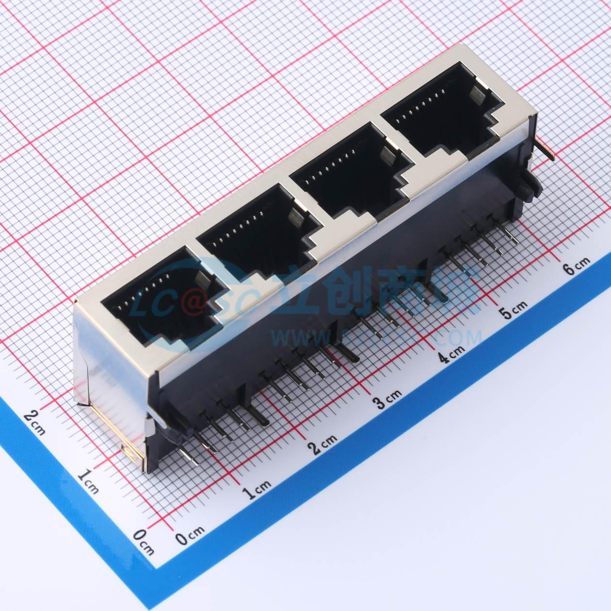 - RJ45 8P/8C 四联 铜壳带屏蔽 21长度 无灯 无弹片
