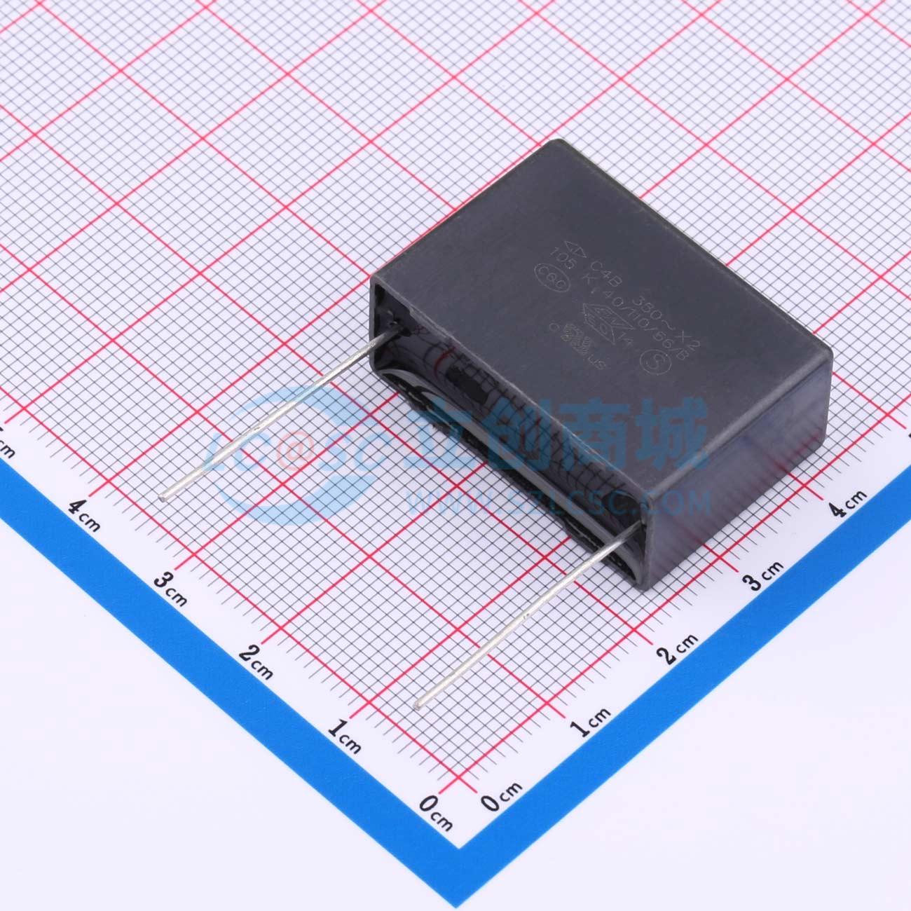 - C4B/X2金属化聚丙烯膜抗干扰安规电容器,尺寸:W:32mm*H:22mm*T:13mm,