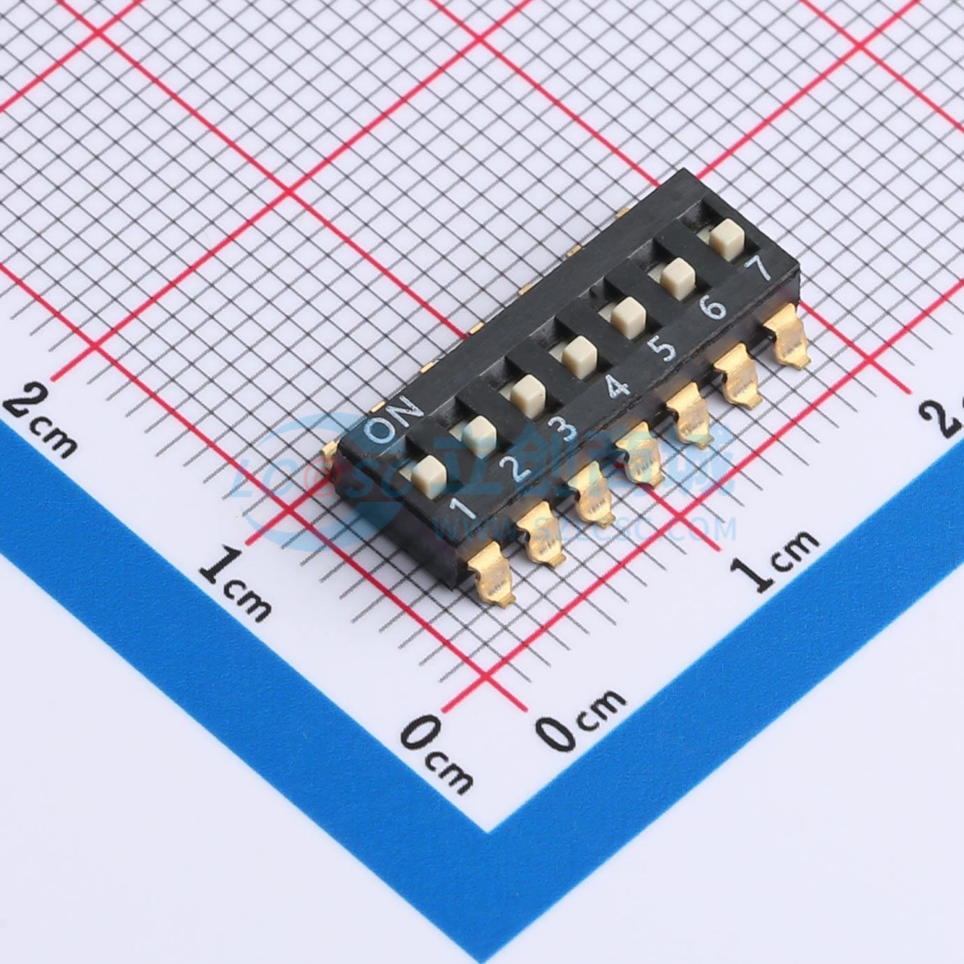 拨码开关贴片式 2.54mm间距,编带 宽脚 7PIN/位 高推 黑色