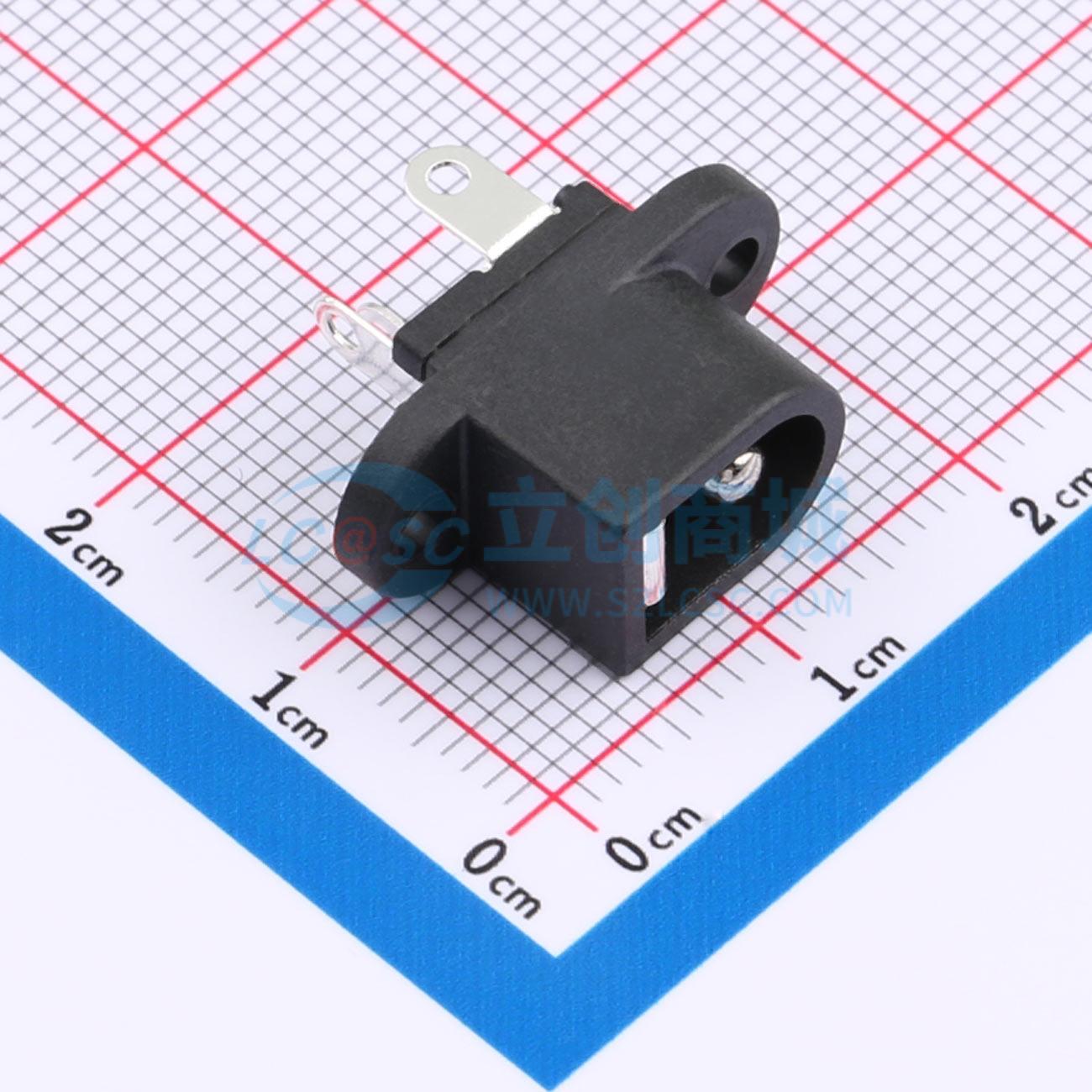 锁板式DC电源插座,带耳朵,铜针直径:2.0