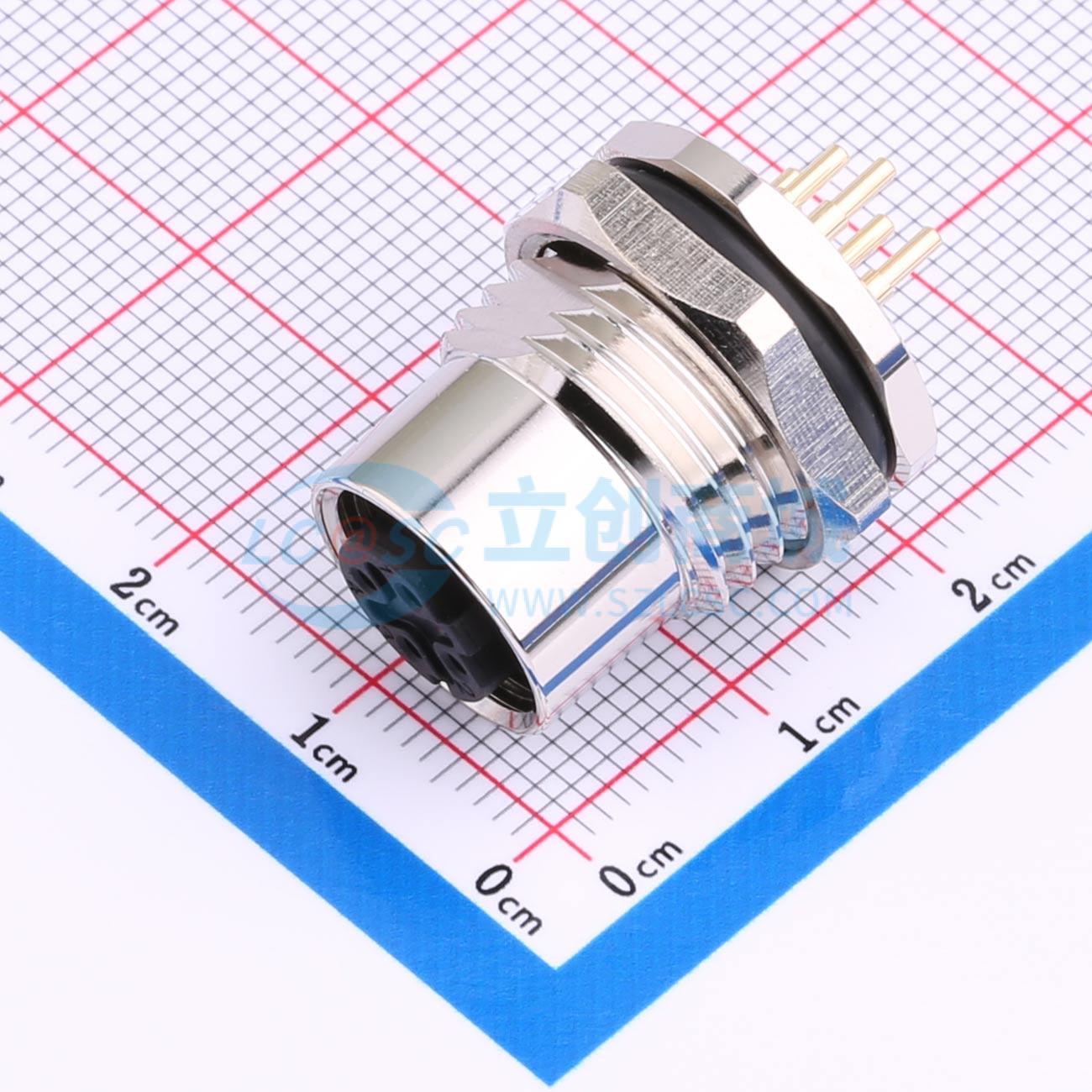 M12板后安装孔型插座PCB式接地款