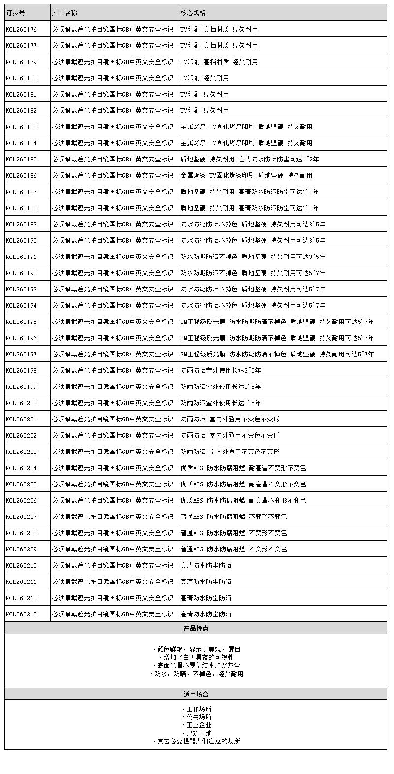 KCL(可兹尔) 必须佩戴遮光护目镜国标GB中英文安全标识 ABS板材 250×315mm KCL260202