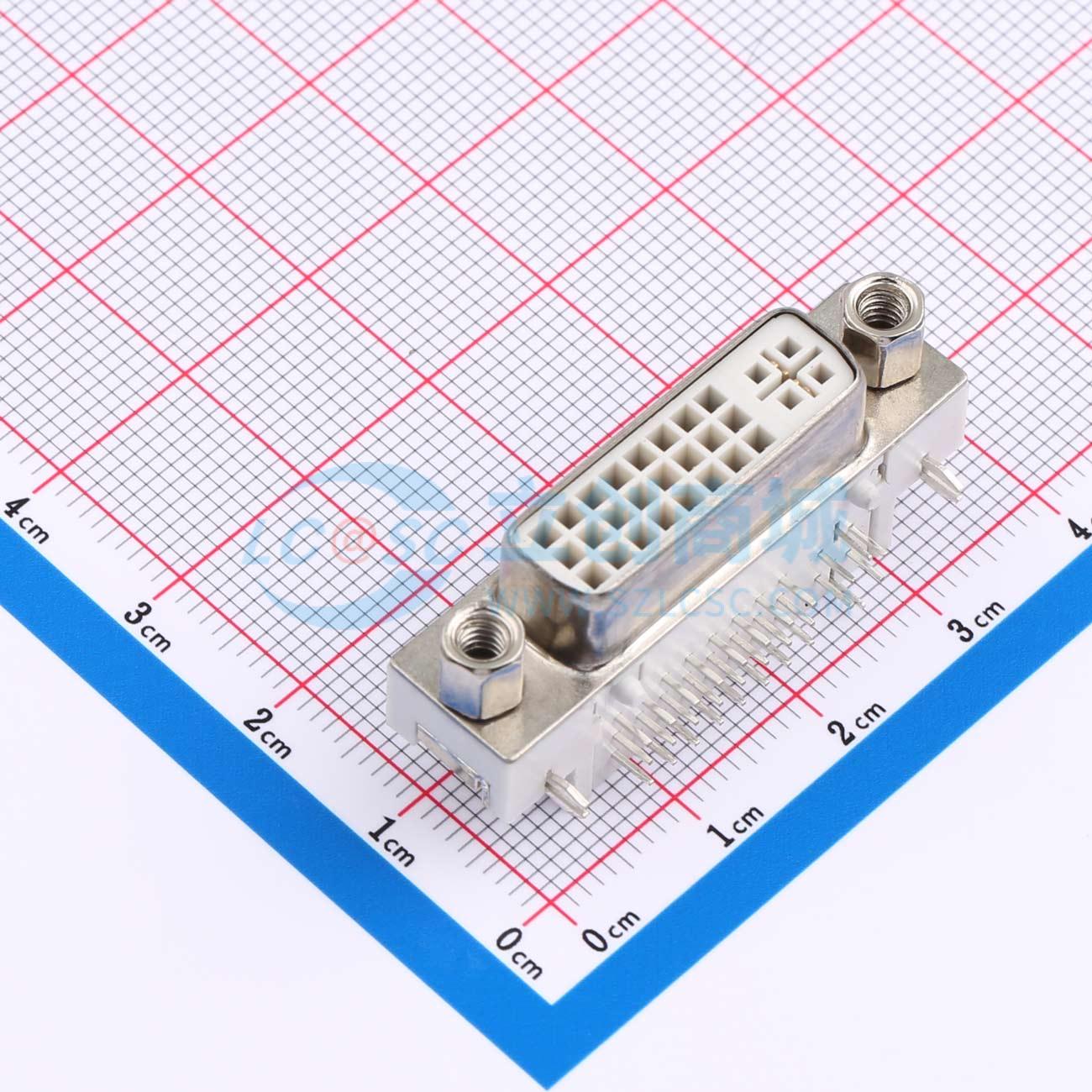 - DVI 24+5母座 90度插板式DIP+镙母 触点电流:3.0A 额定电压(DC):100V 耐久性:5000次循环 工作温度:-25C +70C 安装方式:卧插