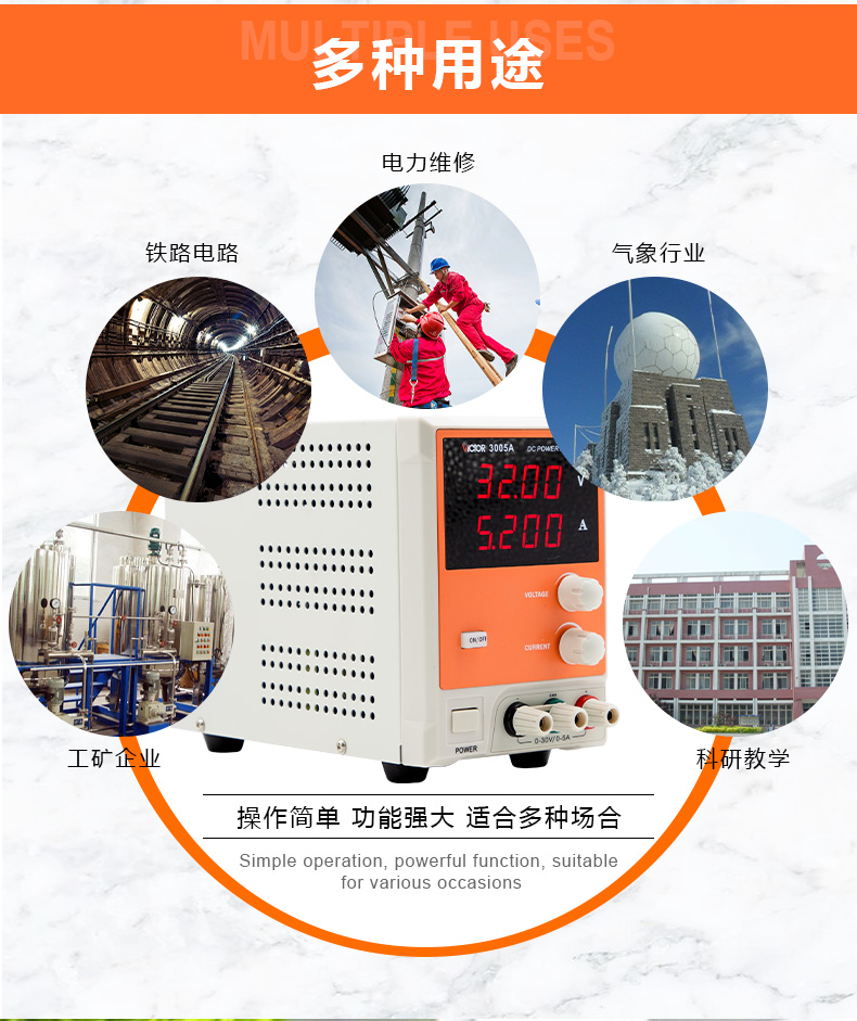 6多种用途:广泛应用于电子产品研发、质量检测、设备调试等场合,解决各类电源需求问题。