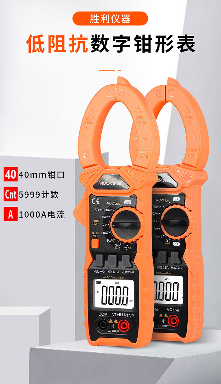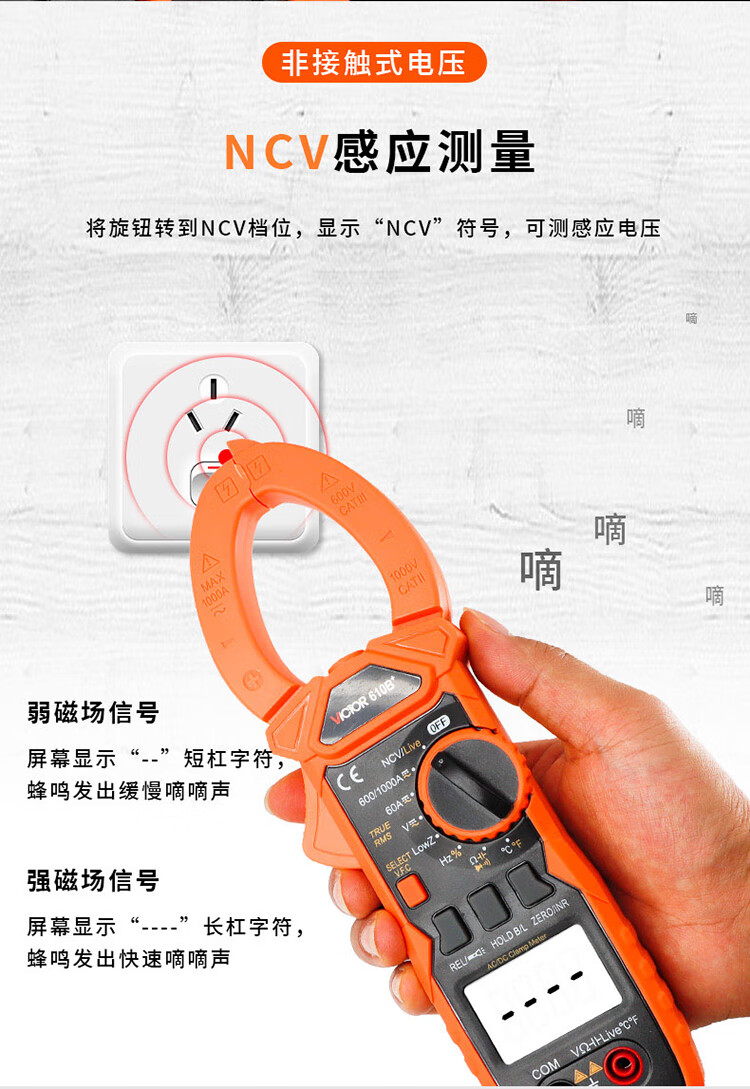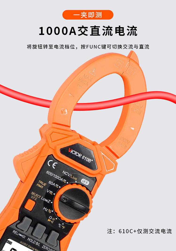VICTOR(胜利) 数字式钳形万用表 VICTOR 610C+ NCV;二极管测试;火线辨别;真有效值;通断测试