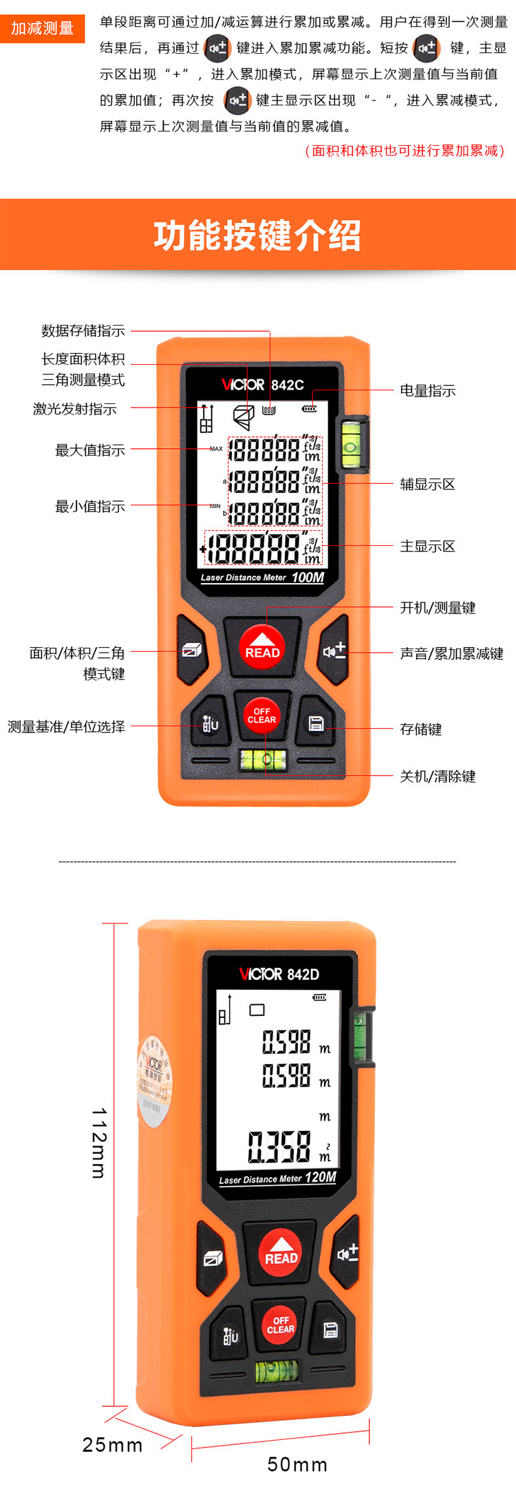 胜利仪器(VICTOR)VC842A 激光测距仪便携式量房电子尺高精度测量仪
