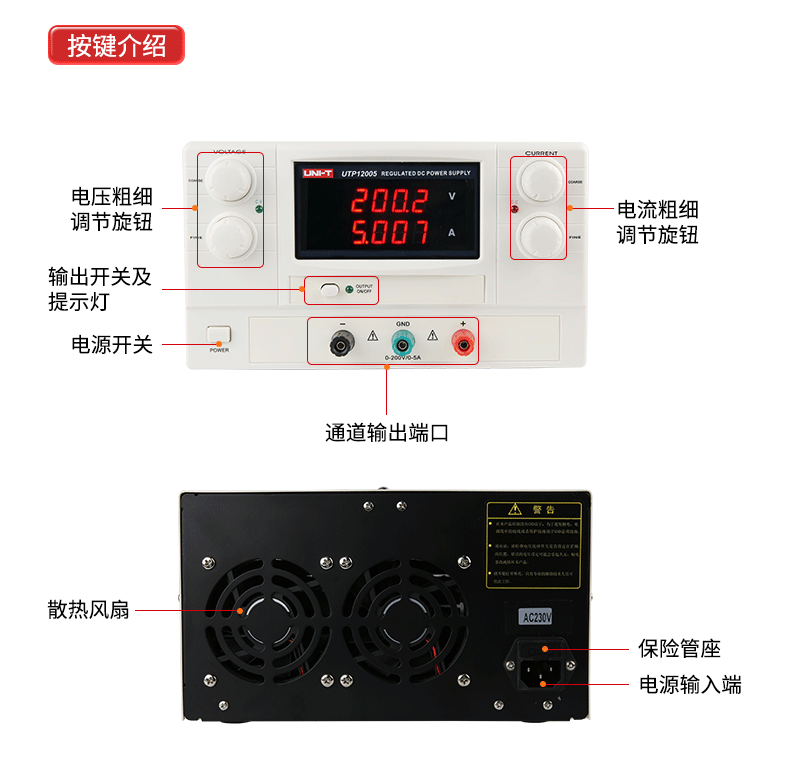5安全可靠:内置散热风扇,有效降低工作温度,延长使用寿命;同时设有保险管座和电源输入端保护,确保使用安全。