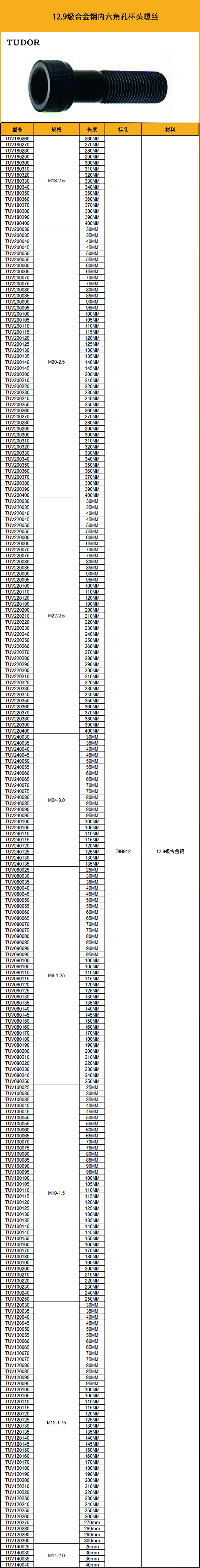 2硬度等级达到12.9级,具备高抗拉强度和优异的耐磨性能,适用于高强度紧固需求。