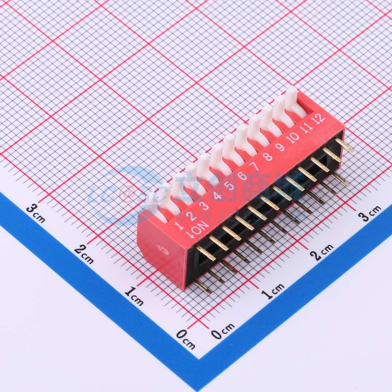 2.54mm间距 12位 琴键式 直插侧拨 红色 拨码开关
