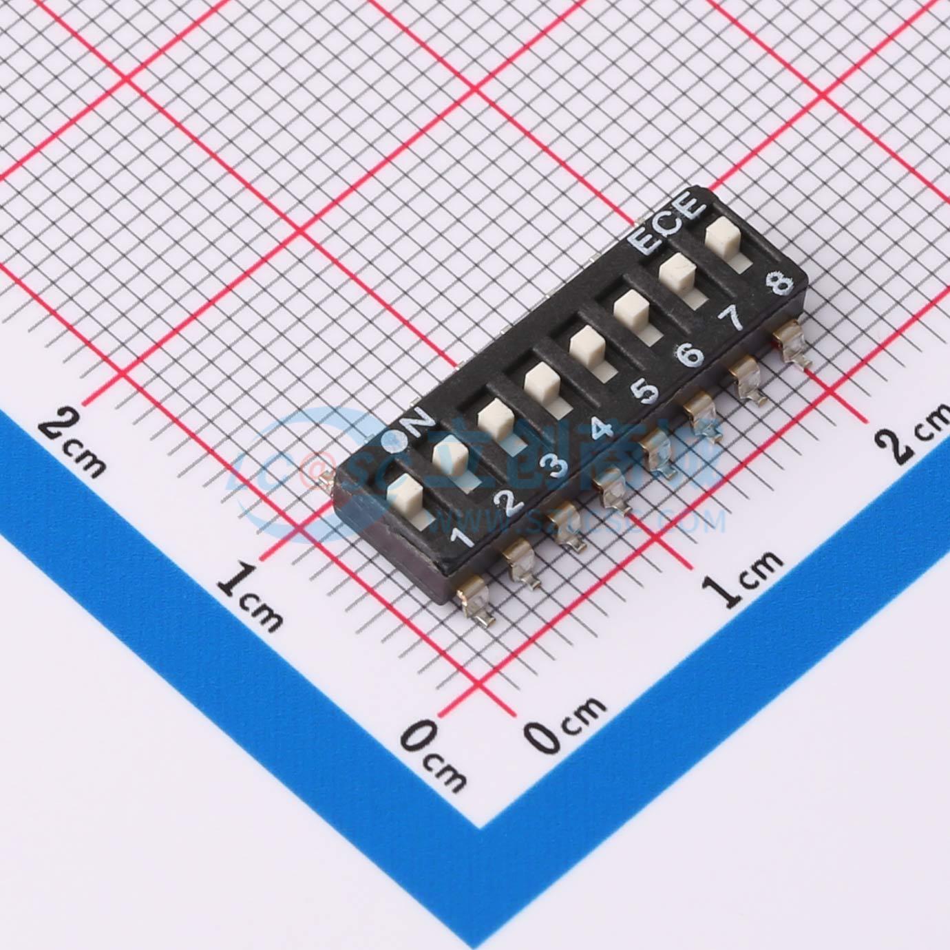 - 单刀单掷 SMD贴片黑色 直插拨码开关 间距2.54mm 8PIN/位 正拨高杆