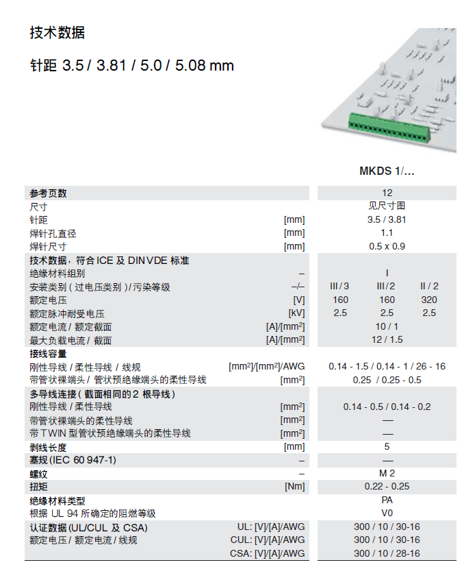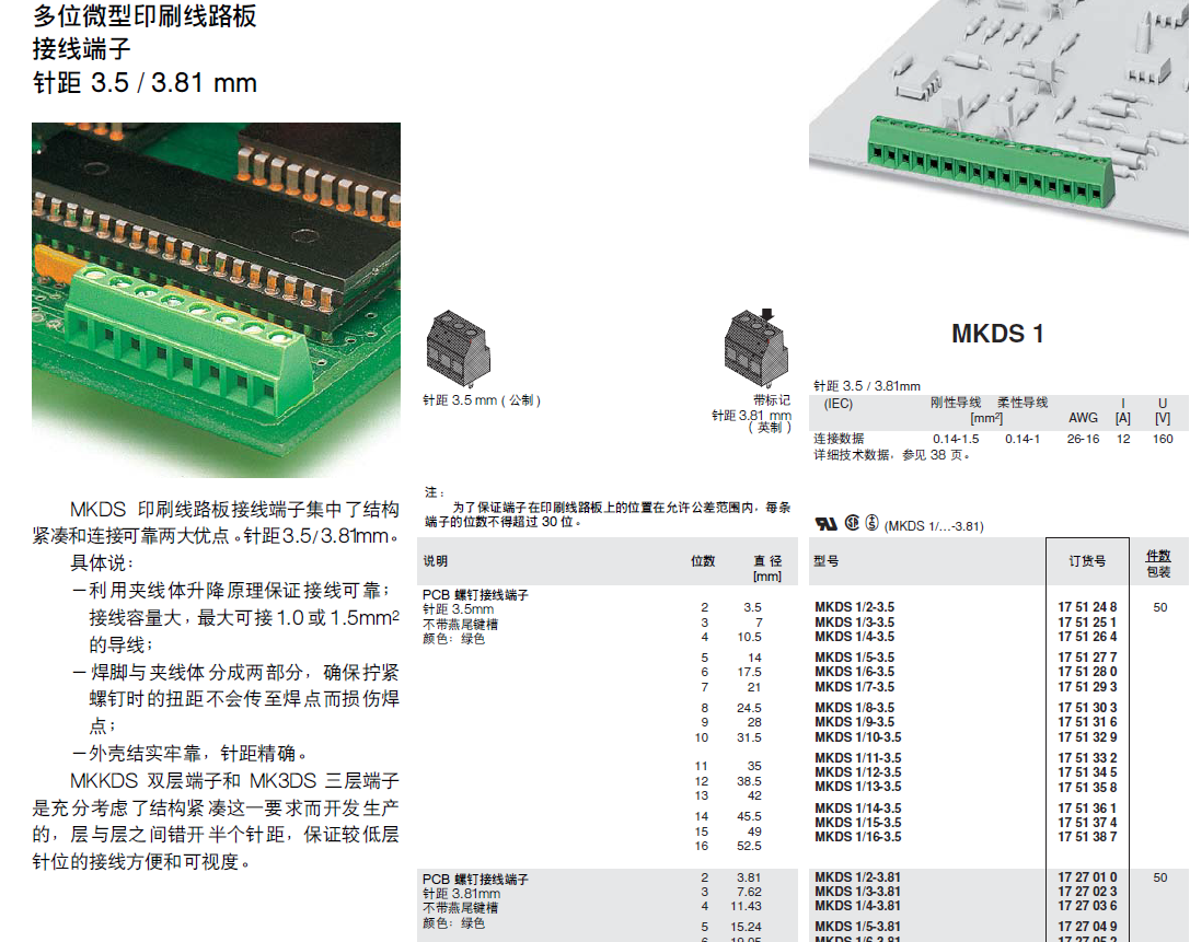 - PCB连接器,标称工作电流:13.5A,标称工作电压:200V,针距:3.5mm,位数:3,接线方式:带压片的螺钉连接,安装:波峰焊,导线/PCB连接方向:0°,颜色:绿色。通用型连接方式,可在全球范围内使用。最大接触力,升温较低。允许连接两条绞线。针对各导线横截面的极小型设计