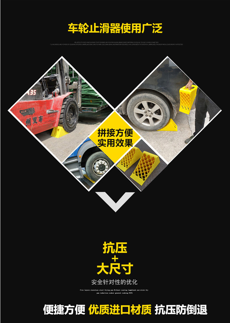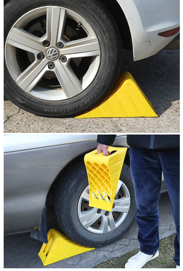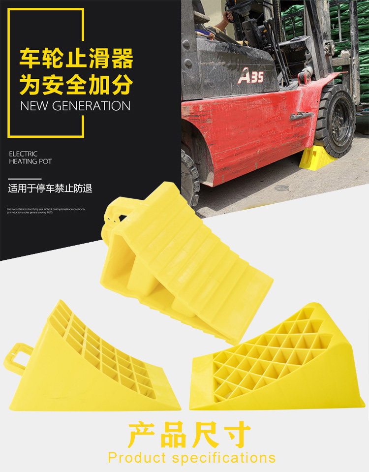 安装时应将止滑器紧贴车轮内侧放置,确保完全接触并稳固卡住轮胎,避免松动。