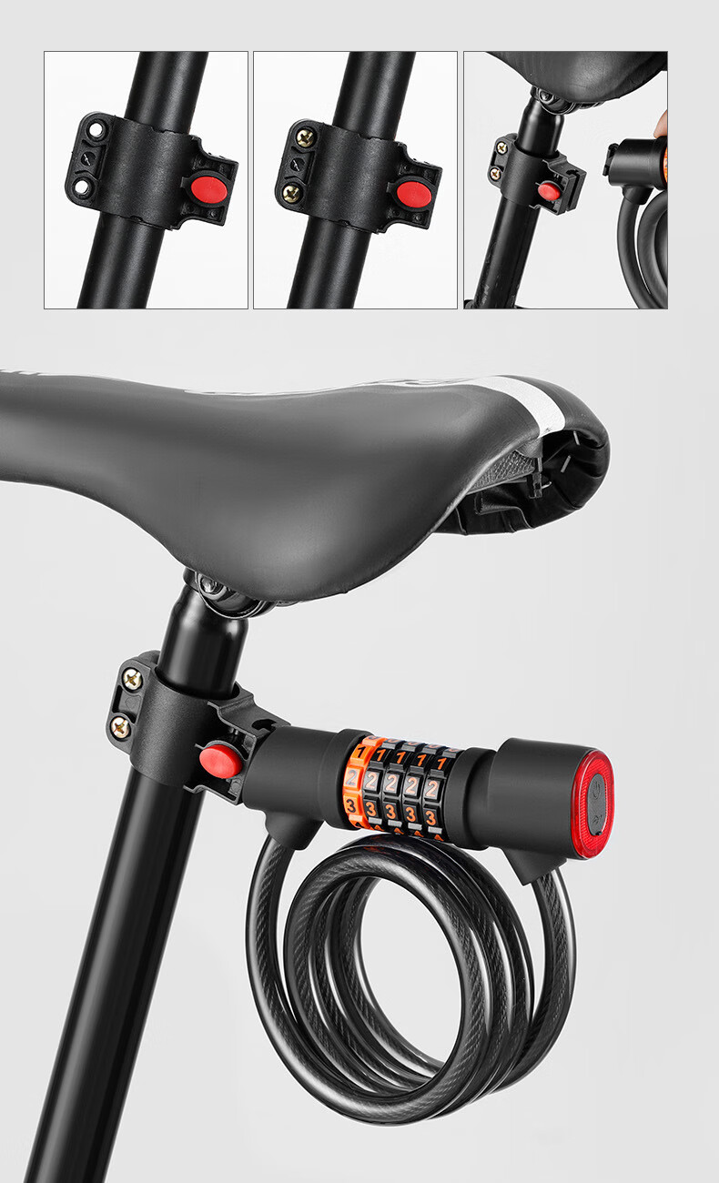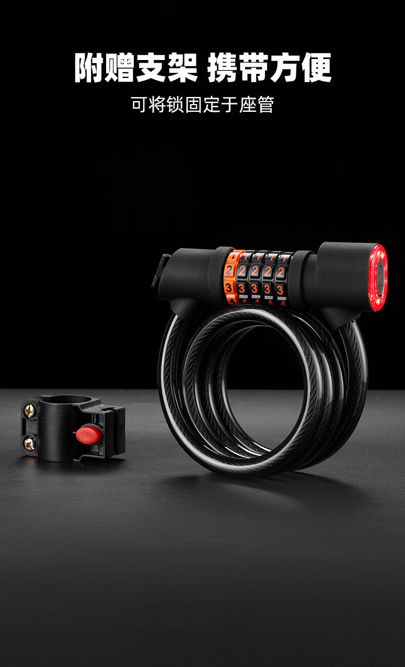 附赠专用支架,可将锁固定于自行车座管上,便于携带且不易丢失