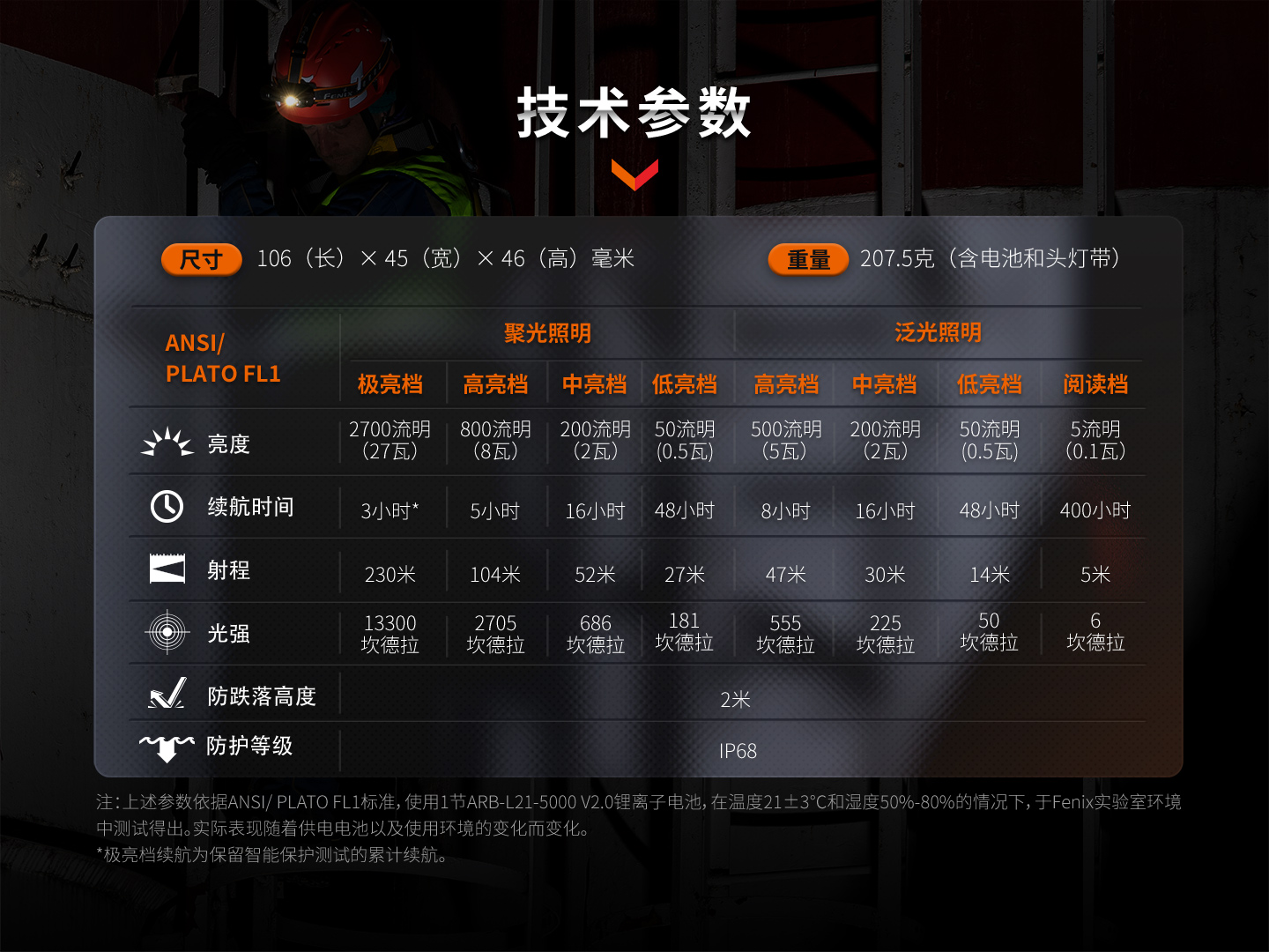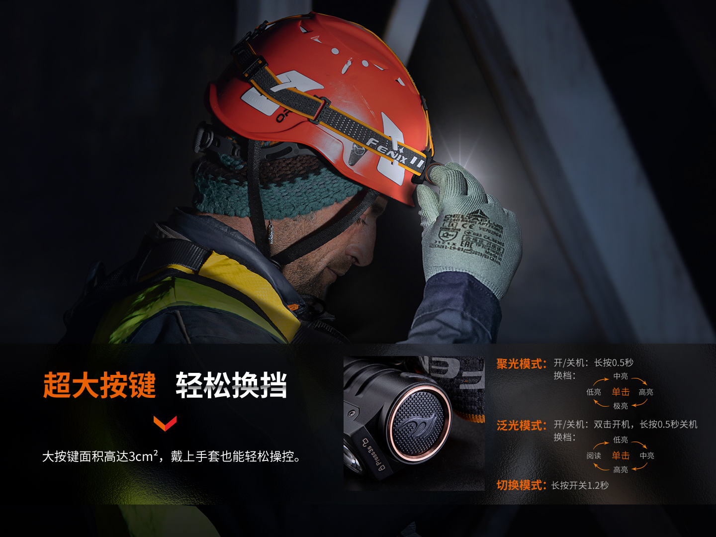 高亮度与远射程:Fenix HM71R头灯提供高达2700流明的亮度和230米的射程,确保在各种环境下都能提供充足的照明。