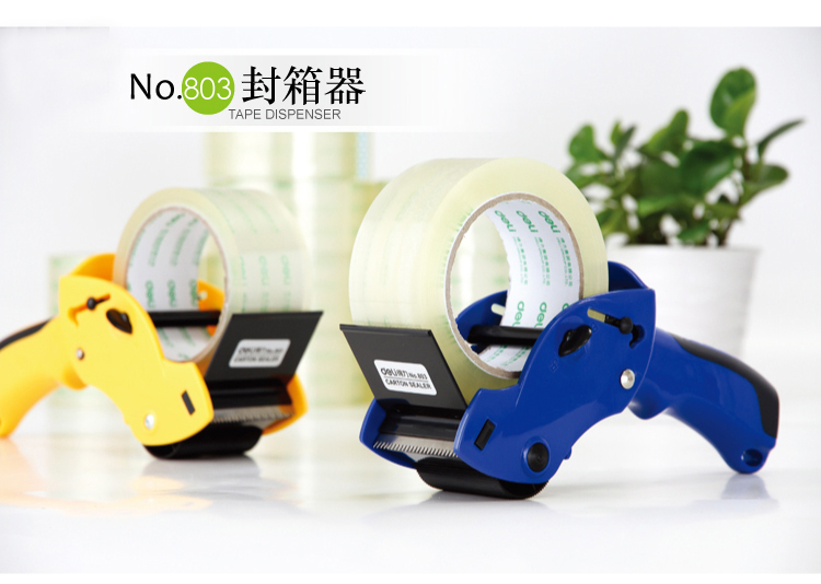 得力803胶带封箱器是一款专为高效打包设计的工具,具有以下特点: