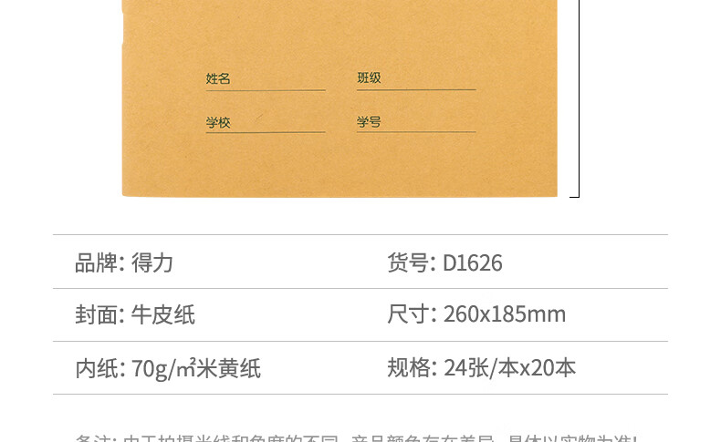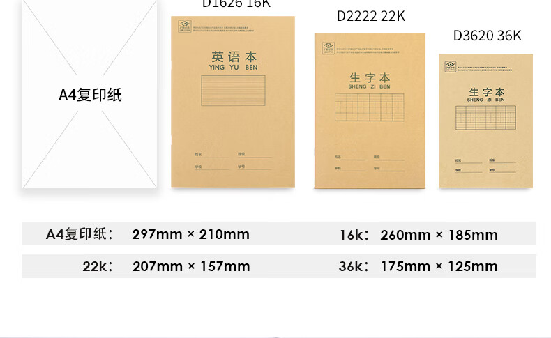 尺寸为260×185mm(16K),符合标准学生用本规格,便于收纳和整理