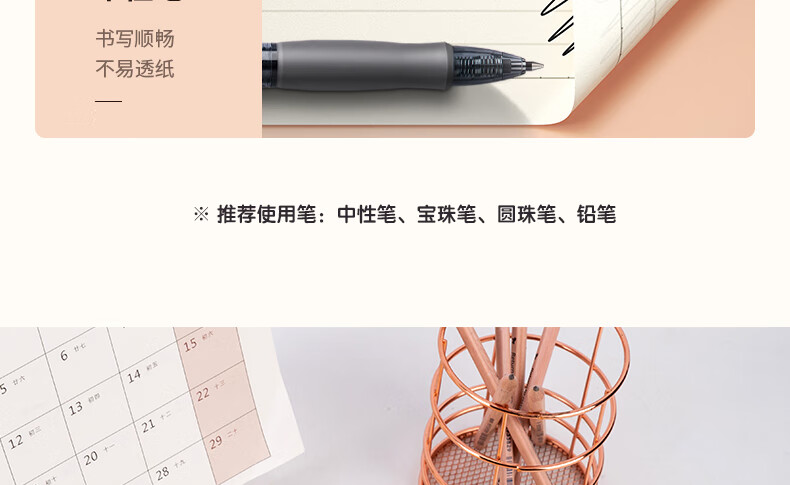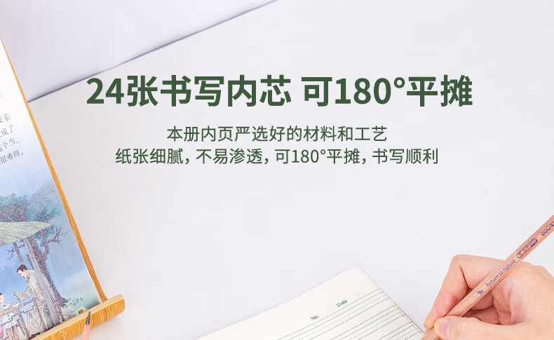 24张书写内芯,可180°平摊,书写流畅,不易渗透,提升书写体验