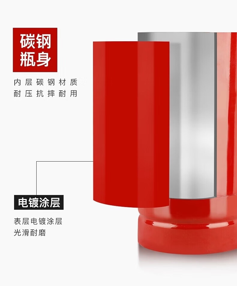 1 采用优质碳钢瓶身,内层碳钢材质,耐压抗摔耐用,确保在各种环境下稳定可靠。