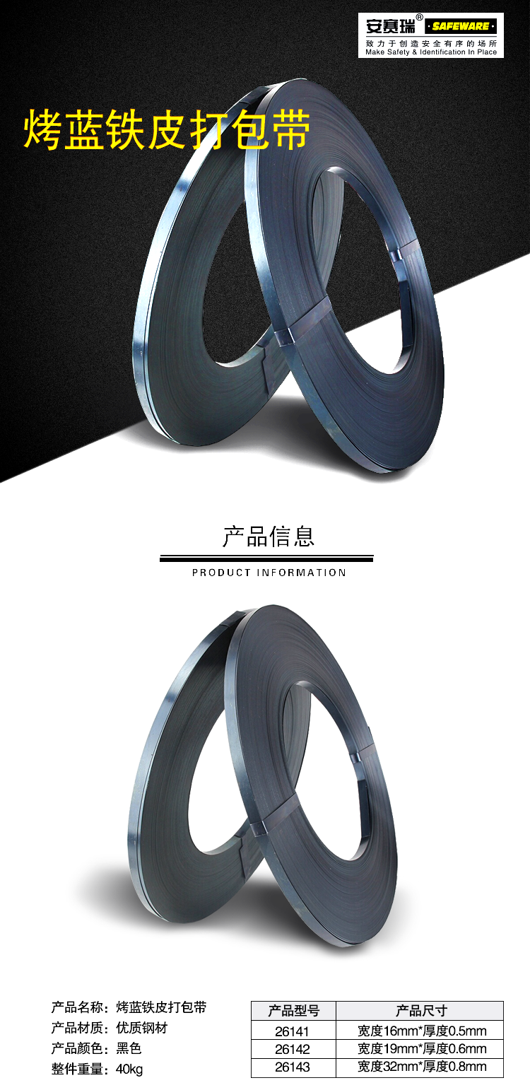 安赛瑞 烤蓝铁皮打包带 金属打包钢带 宽度32mm 40kg(20kg×2)承重型金属打包捆绑带26143,参考价格¥432.12。免费下载专业资料、手册,有详细的典型应用场景。