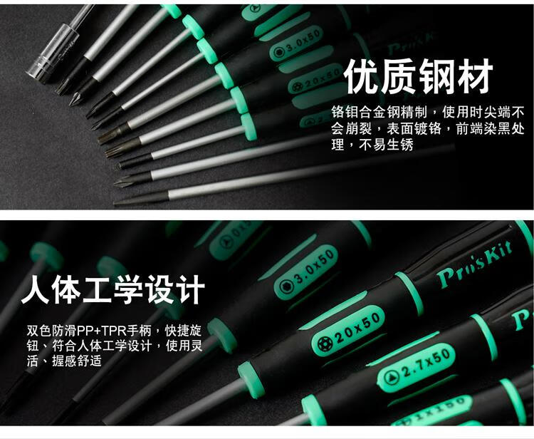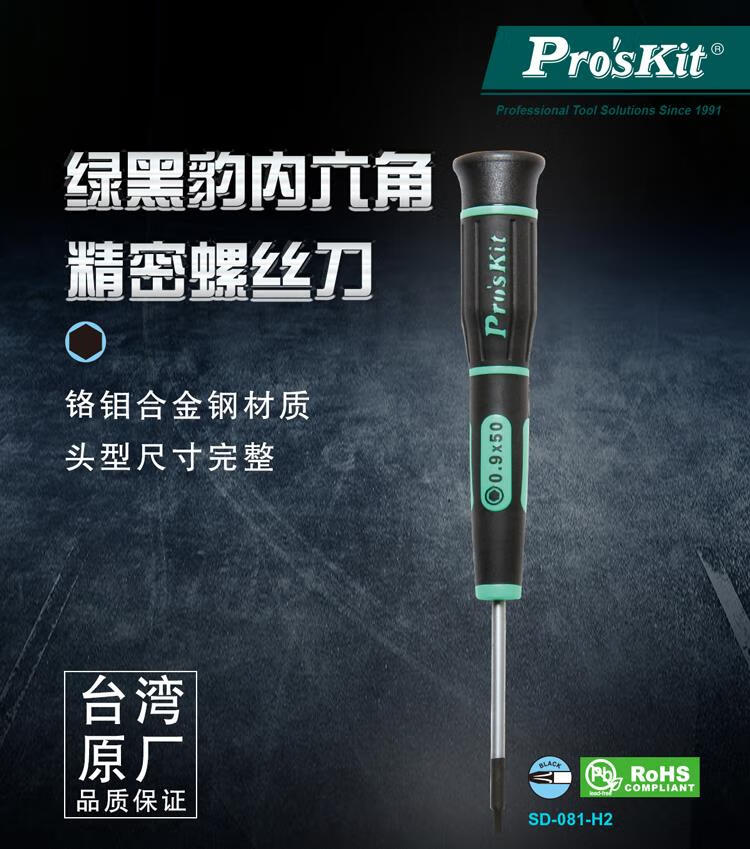 宝工 (Pro'sKit)SD-081-H2 精密螺丝 綠黑六角精密起子 0.9*50mm