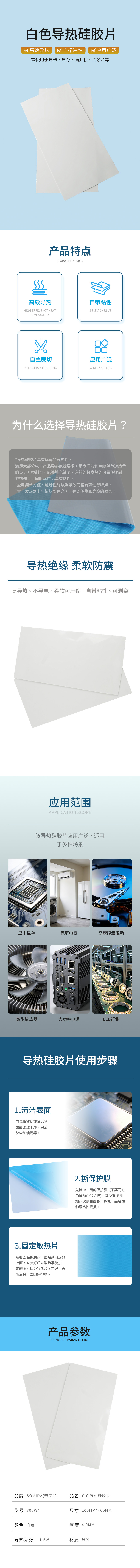 somida(索梦得)白色导热硅胶片 导热系数1.5W 4.0T*200mm*400mm 300W4