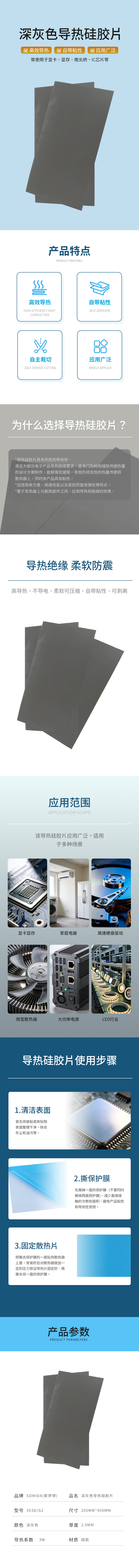 索梦得(SOMIDA)深灰色导热硅胶片 导热系数3W 2.0T*200mm*400mm