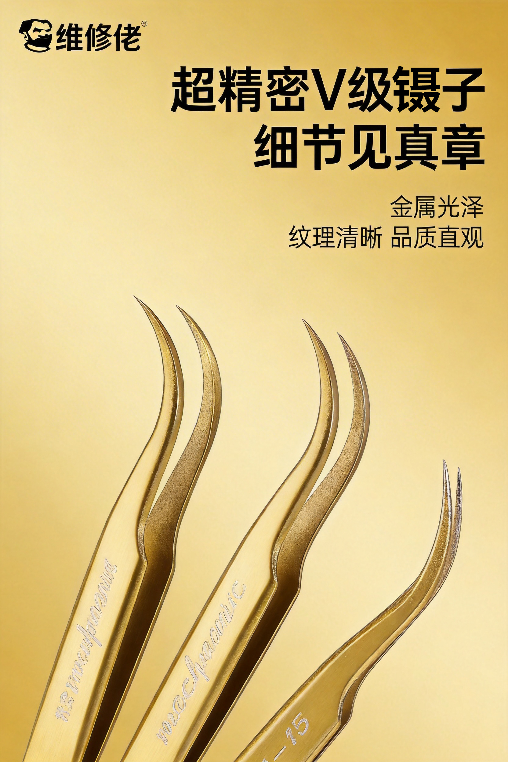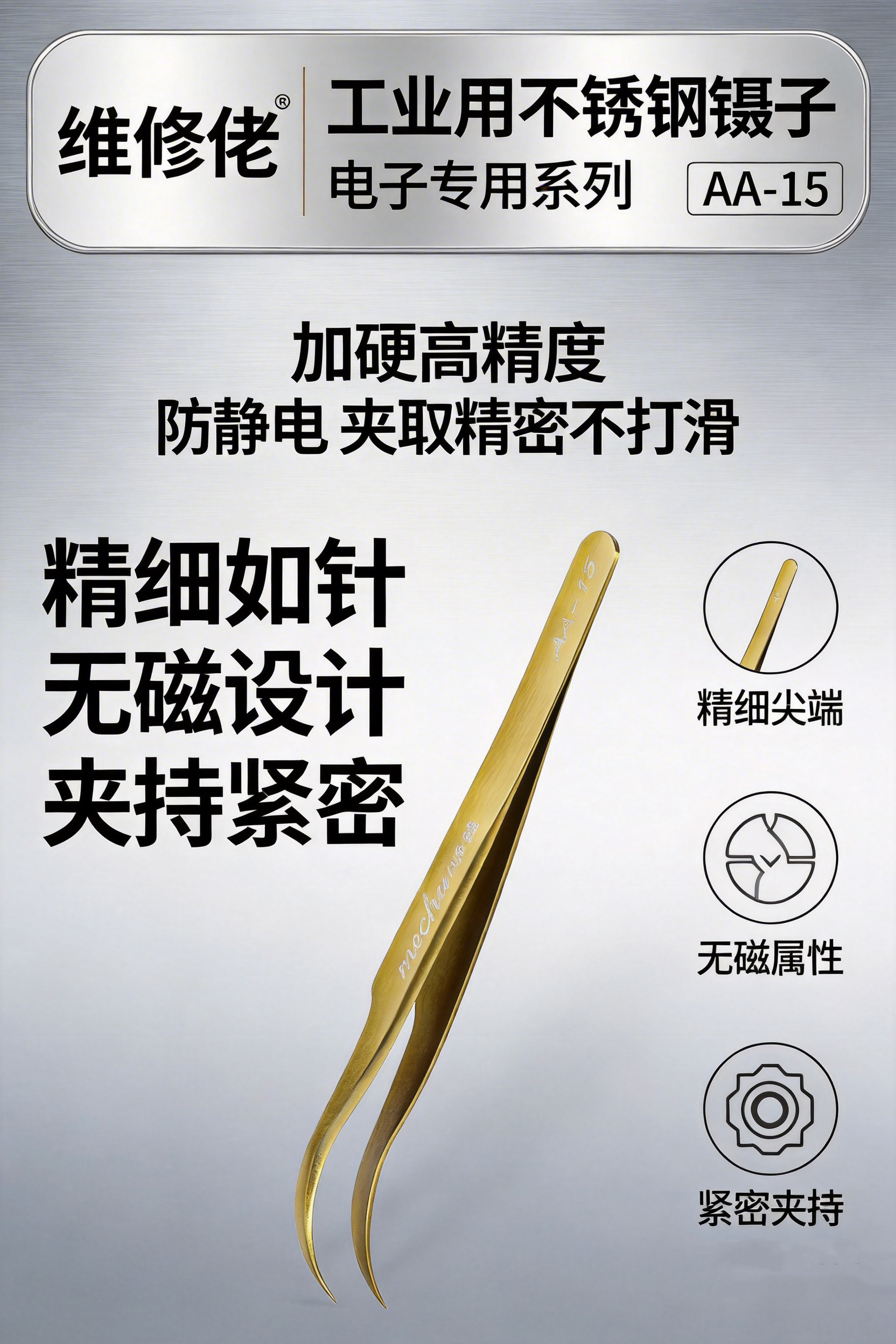 维修佬 工业用不锈钢镊子 加硬高精度防静电 夹精密电子元件弯细尖头电子专用夹子弯嘴镊子燕窝挑毛工具