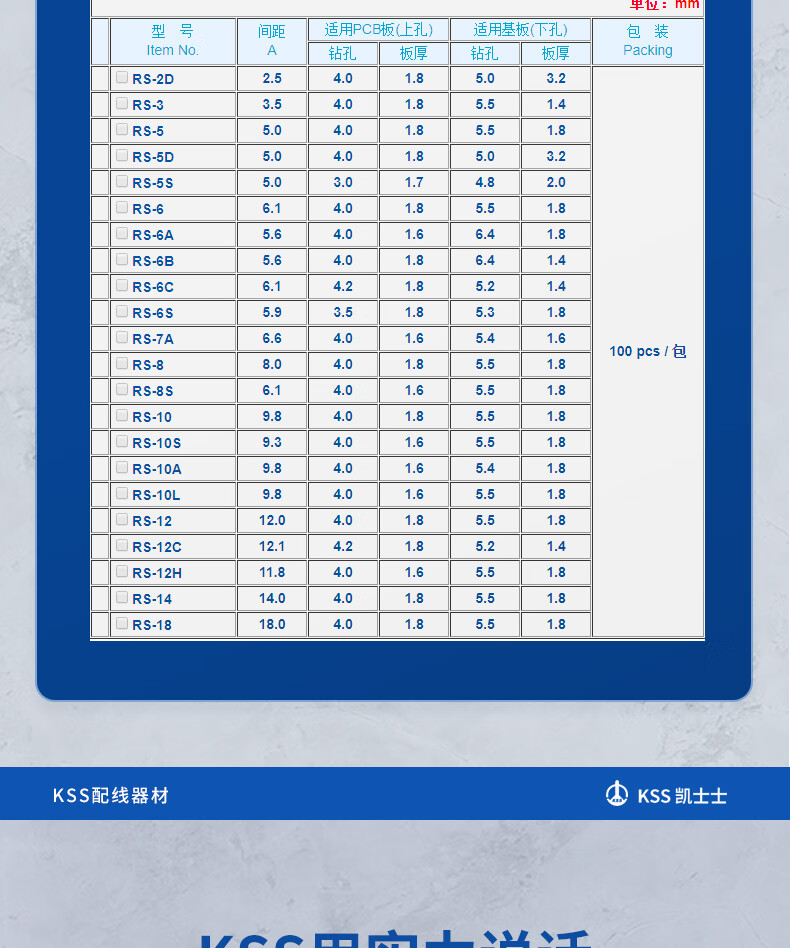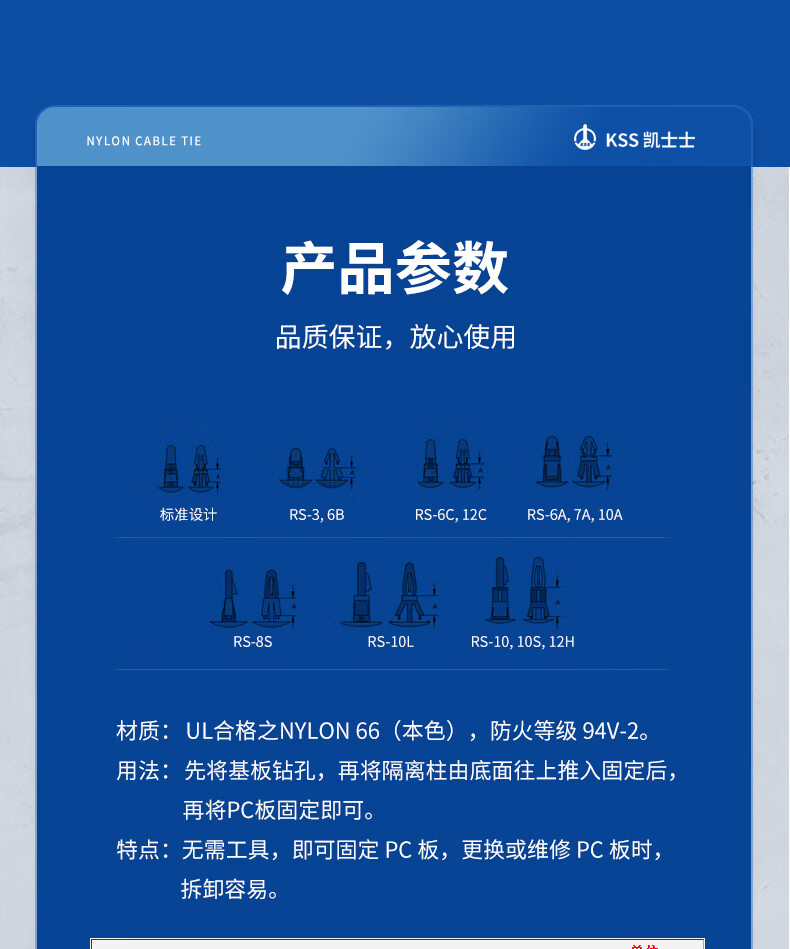 [一整包100个]凯士士KSS平底隔离柱 防火等级94V-2 环保 RS-5D