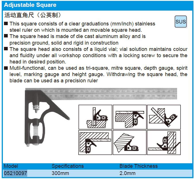 活动直角尺(公英制)具有以下特点: