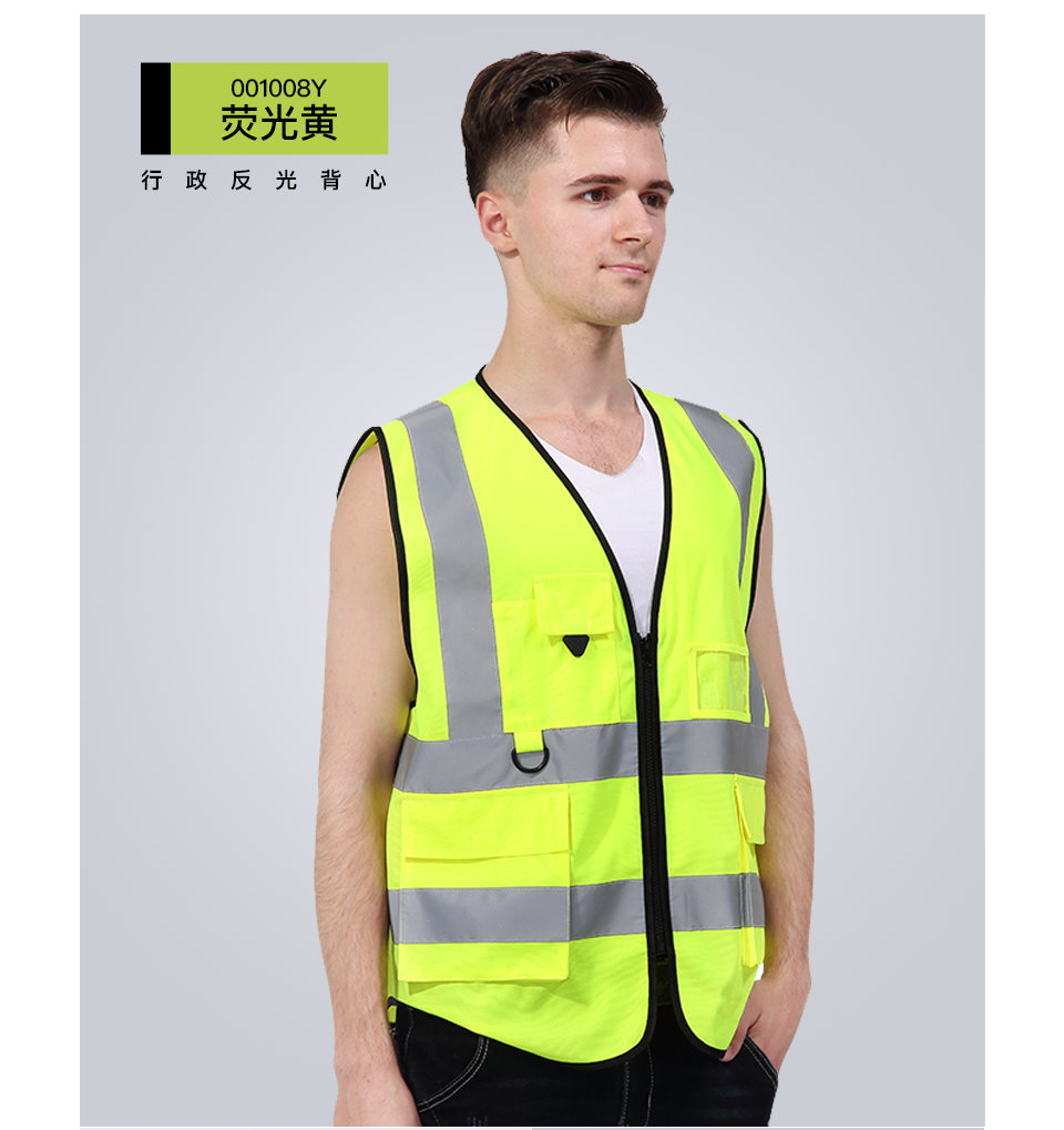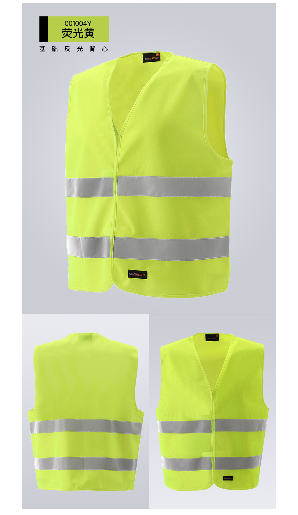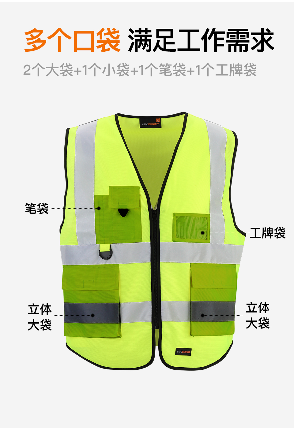 CMCBRIGHT添星 反光背心 粘扣式 反光衣 荧光黄 5cm 车缝高亮反光条两横 2XL码