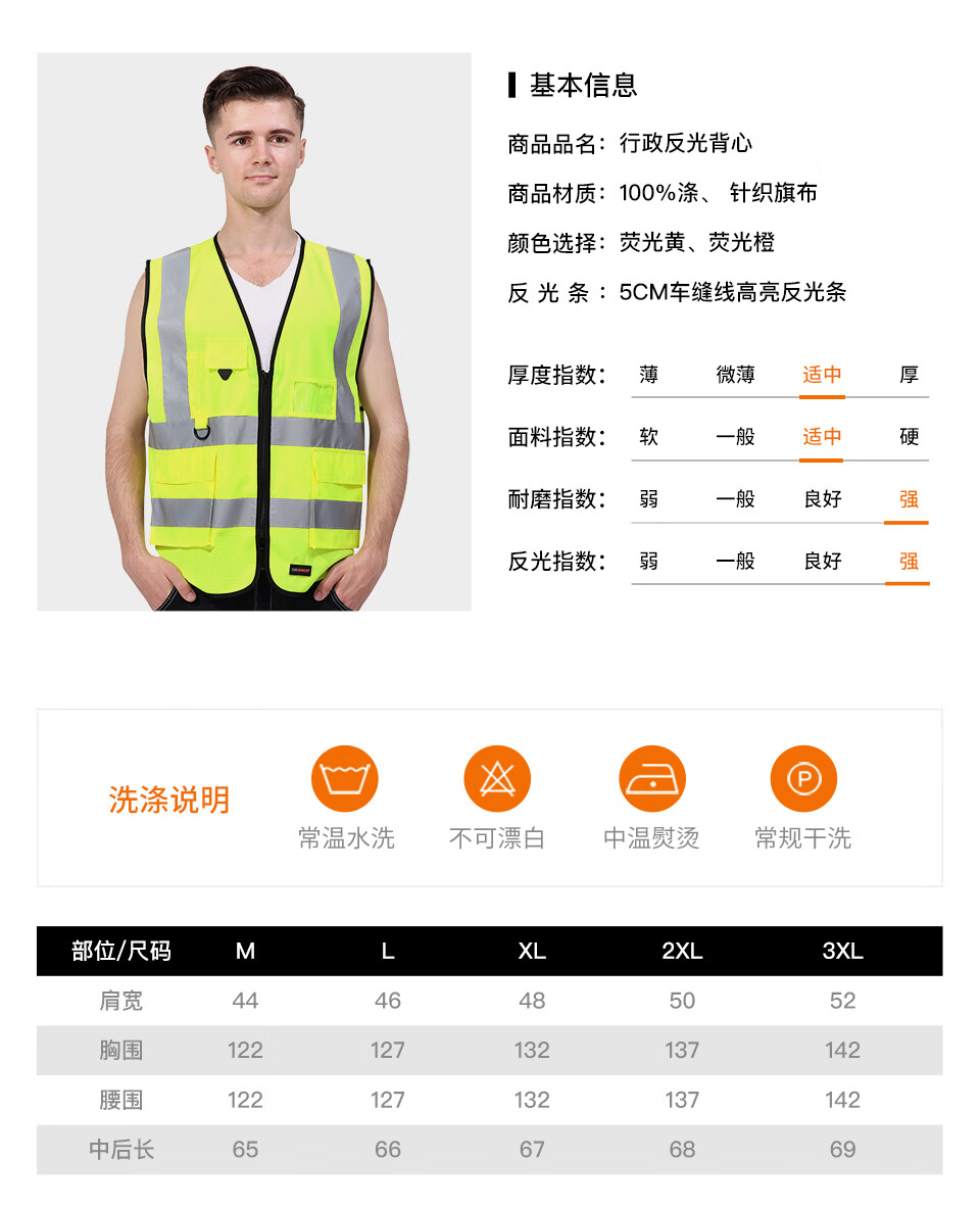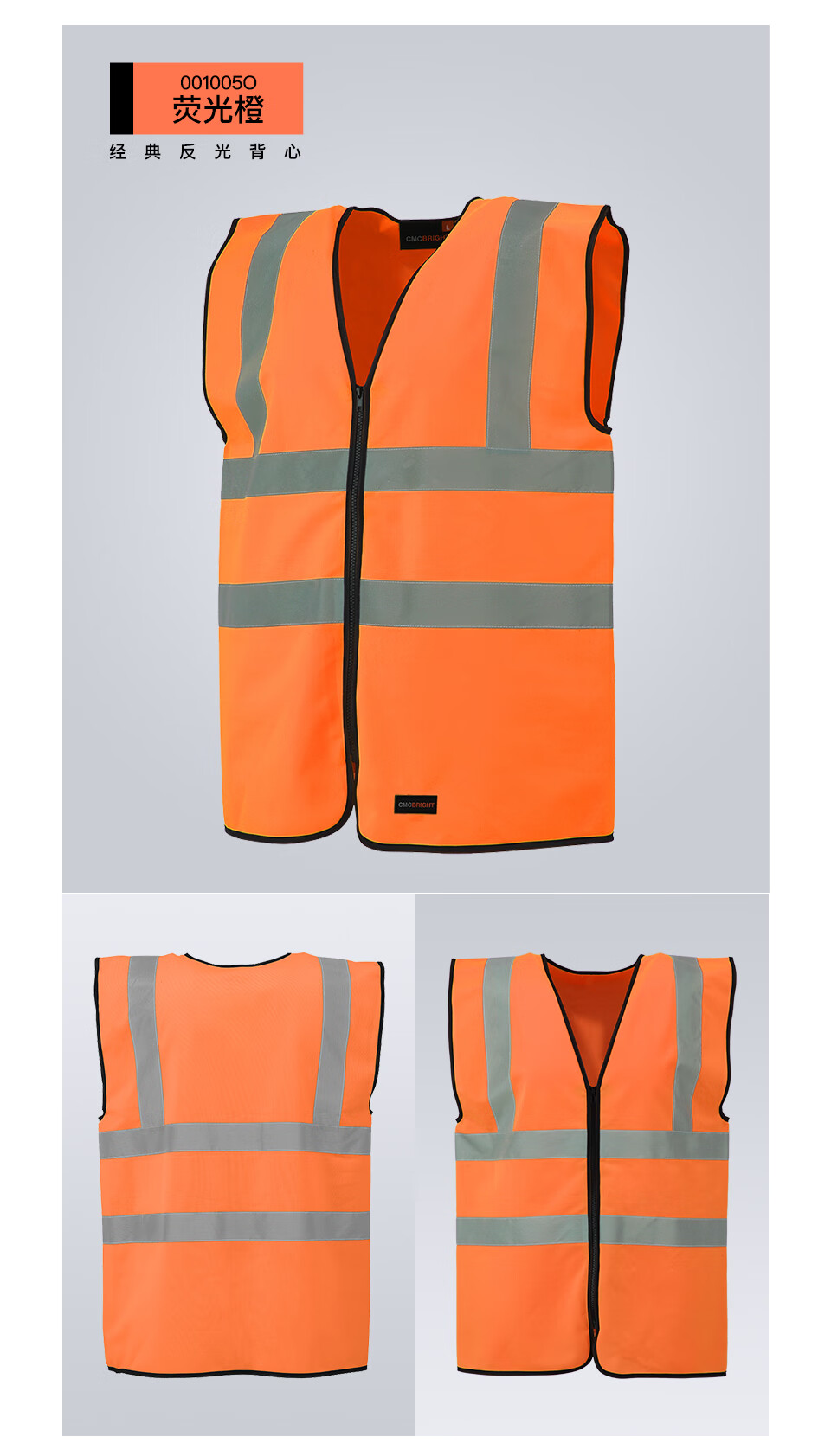 CMCBRIGHT添星 反光背心 粘扣式 反光衣 荧光黄 5cm 车缝高亮反光条两横 3XL码